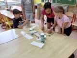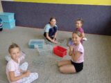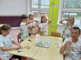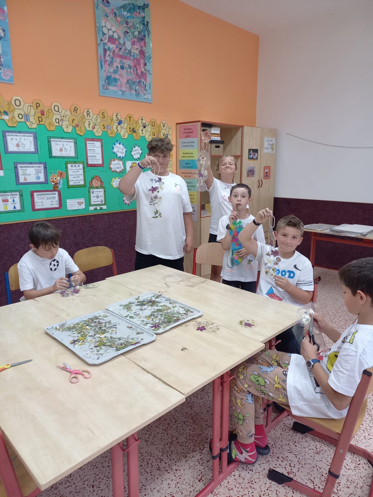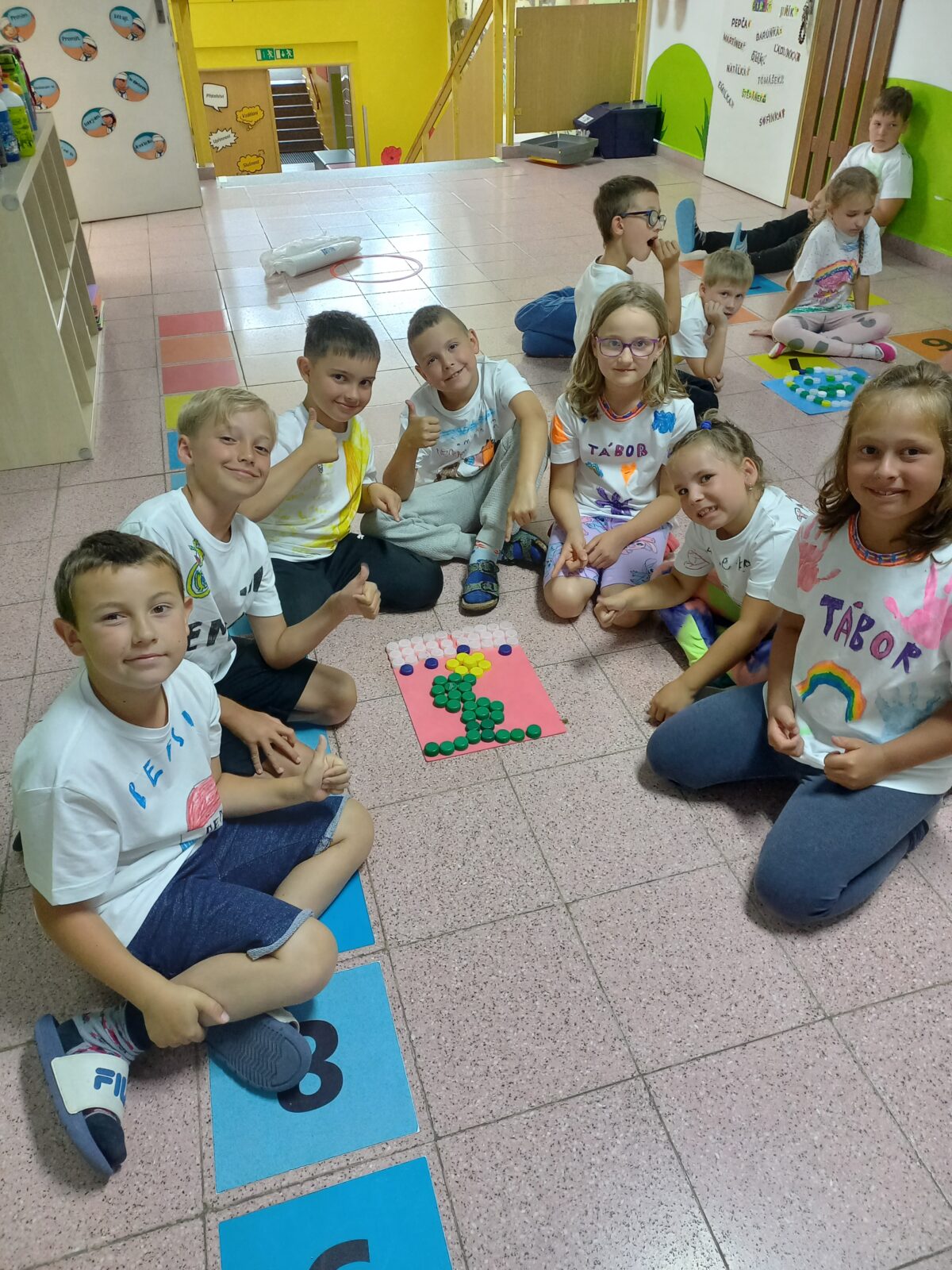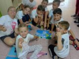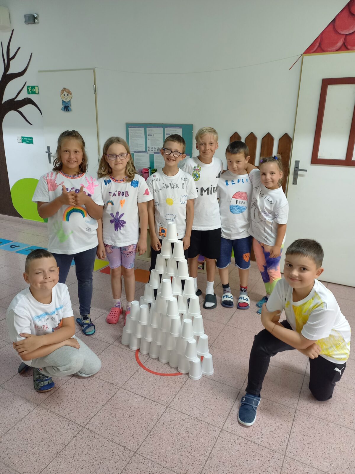 8.7.2025 Mgr.Eva AdamcováDruhý propršený den našeho červencového příměstského tábora se odehrával v duchu tvoření. Dopoledne jsme si připravili zdravou svačinu – ovocné špízy a výborné pomazánky. Děti si také vyrobily pestré táborové placky a „vyladily“ táborový dress code – trička. Před obědem jsme ještě stihli stavět stavby z kostek i geomagu. V odpolední části tábora jsme si zasoutěžili mezi kapkami deště, ale i v suchu a opět tvořili – ze sušených kytiček nebo z krepového papíru. Na závěr dne jsme vyhlásili týmovou soutěž ve stavbě nejvyšší věže z kelímků. Celý den nám rychle utekl a děti si domů odnesly nejen spoustu krásných výrobků, ale také milé vzpomínky na čas strávený s kamarády.