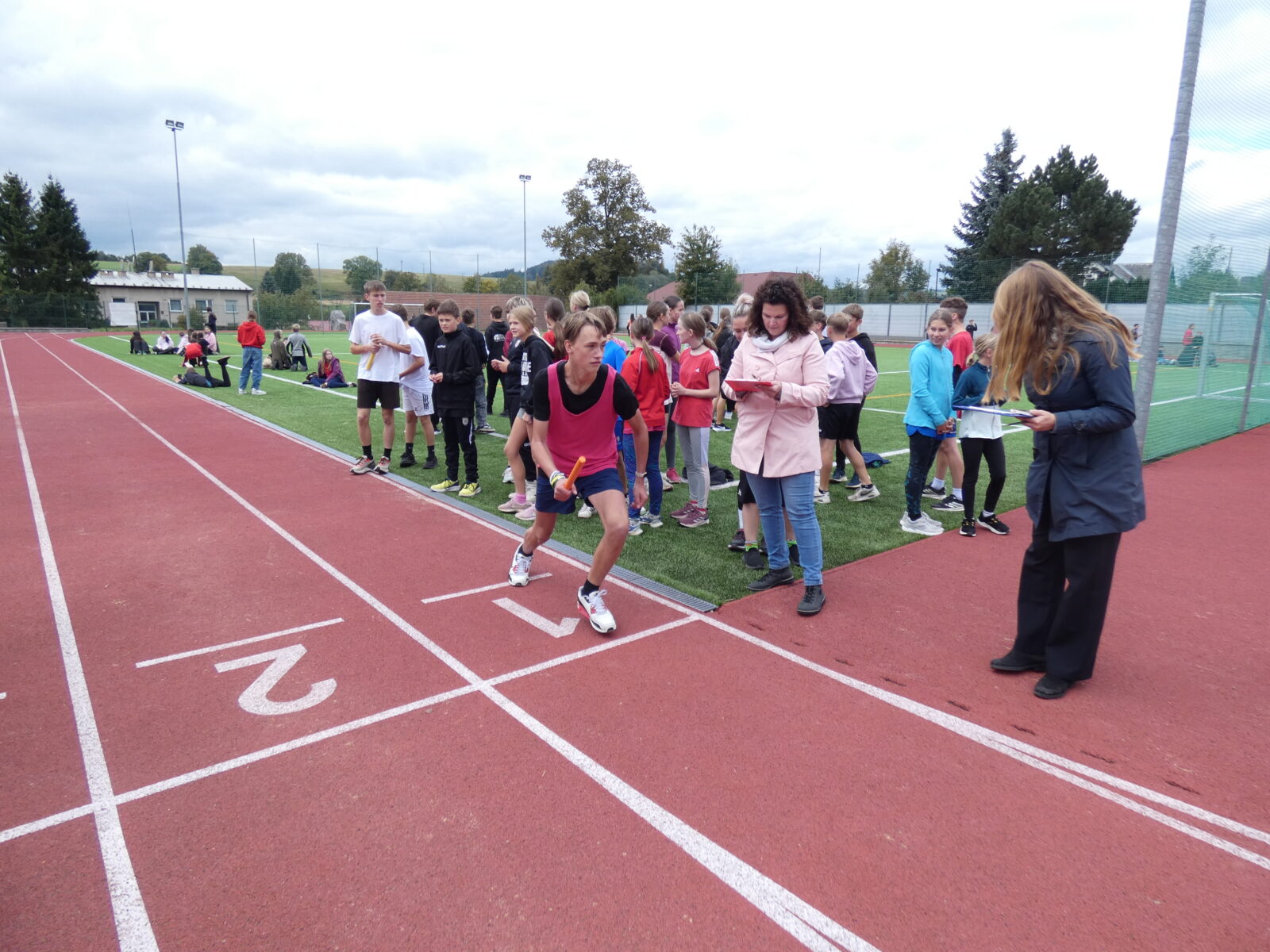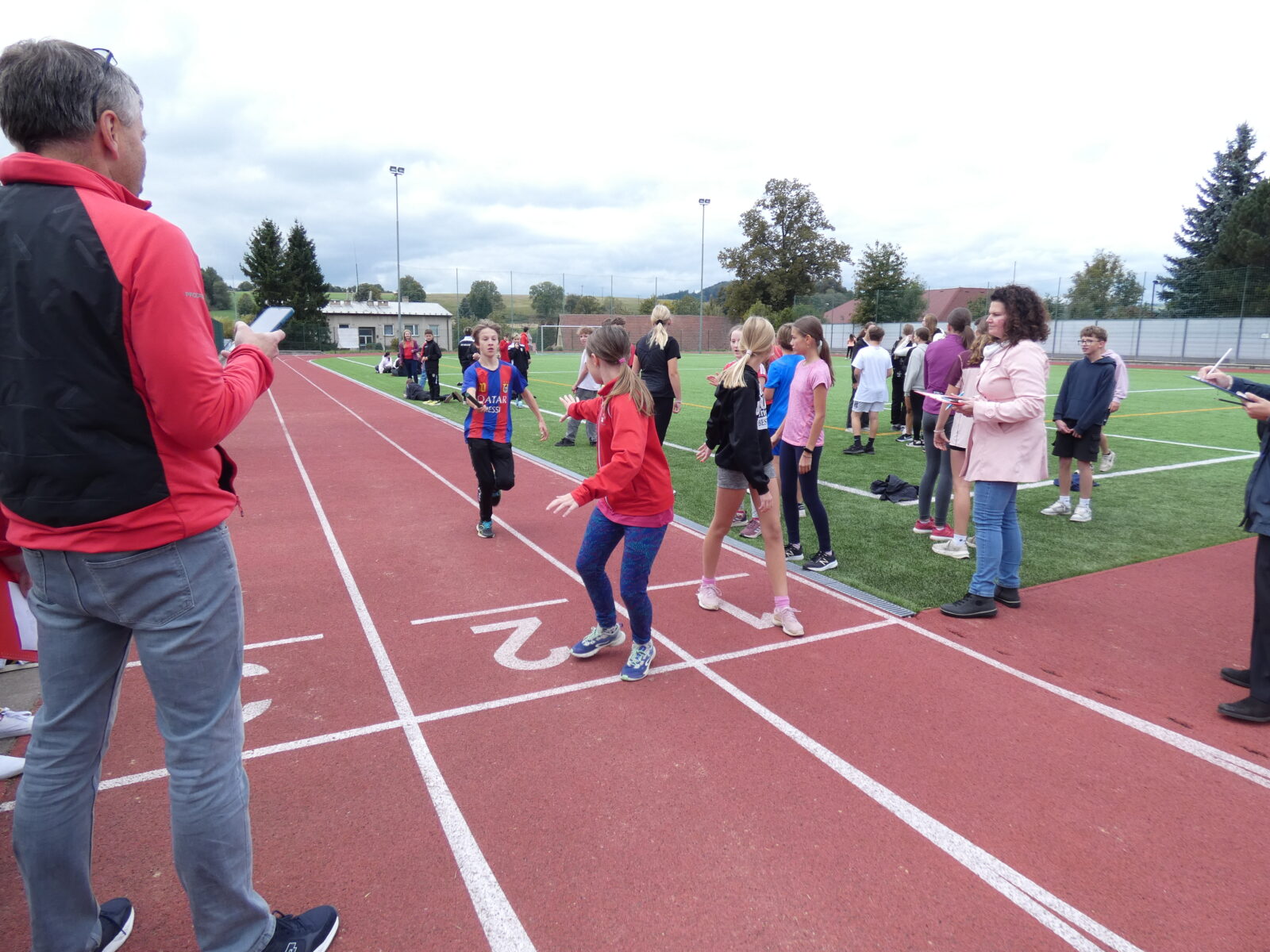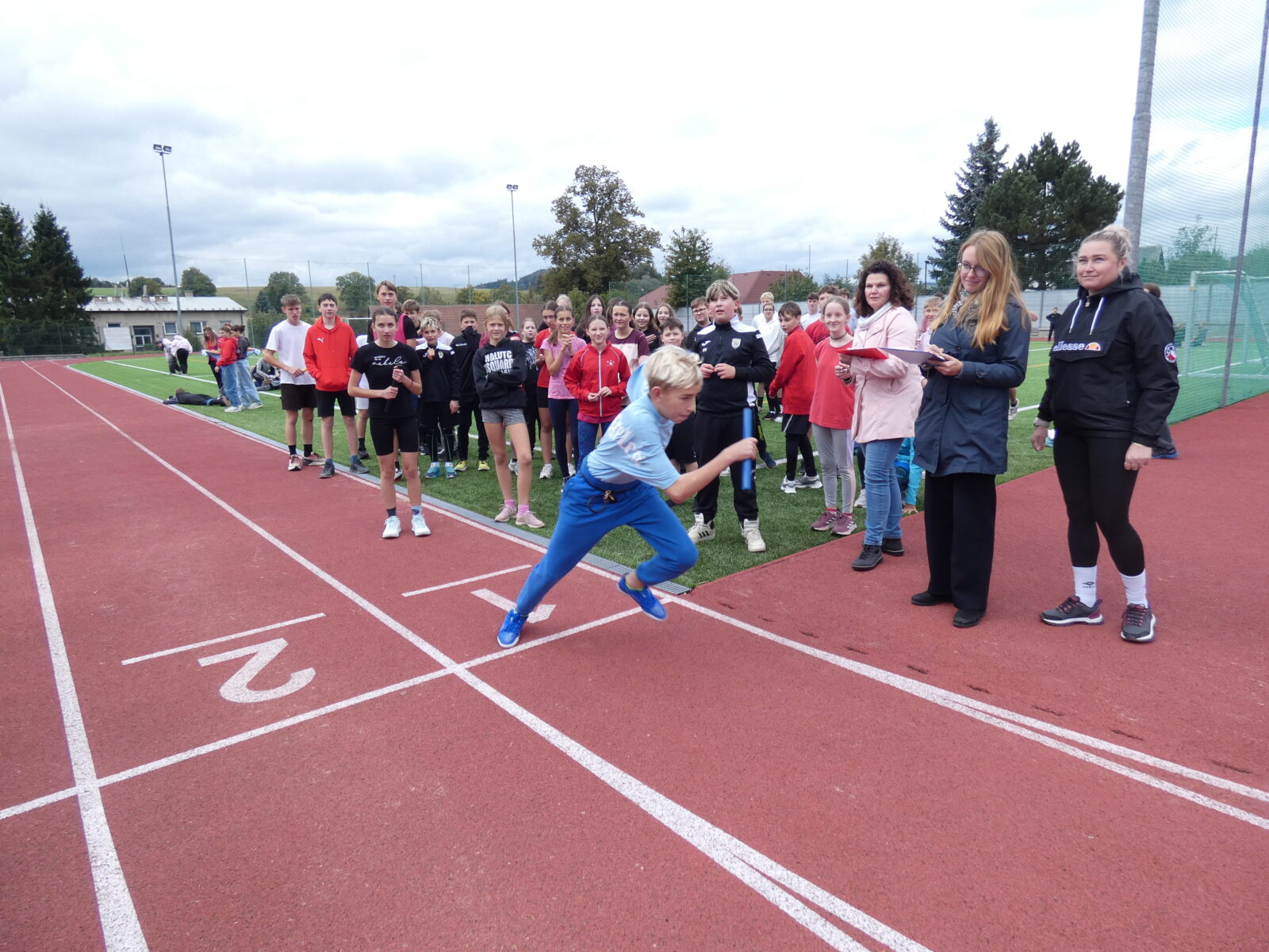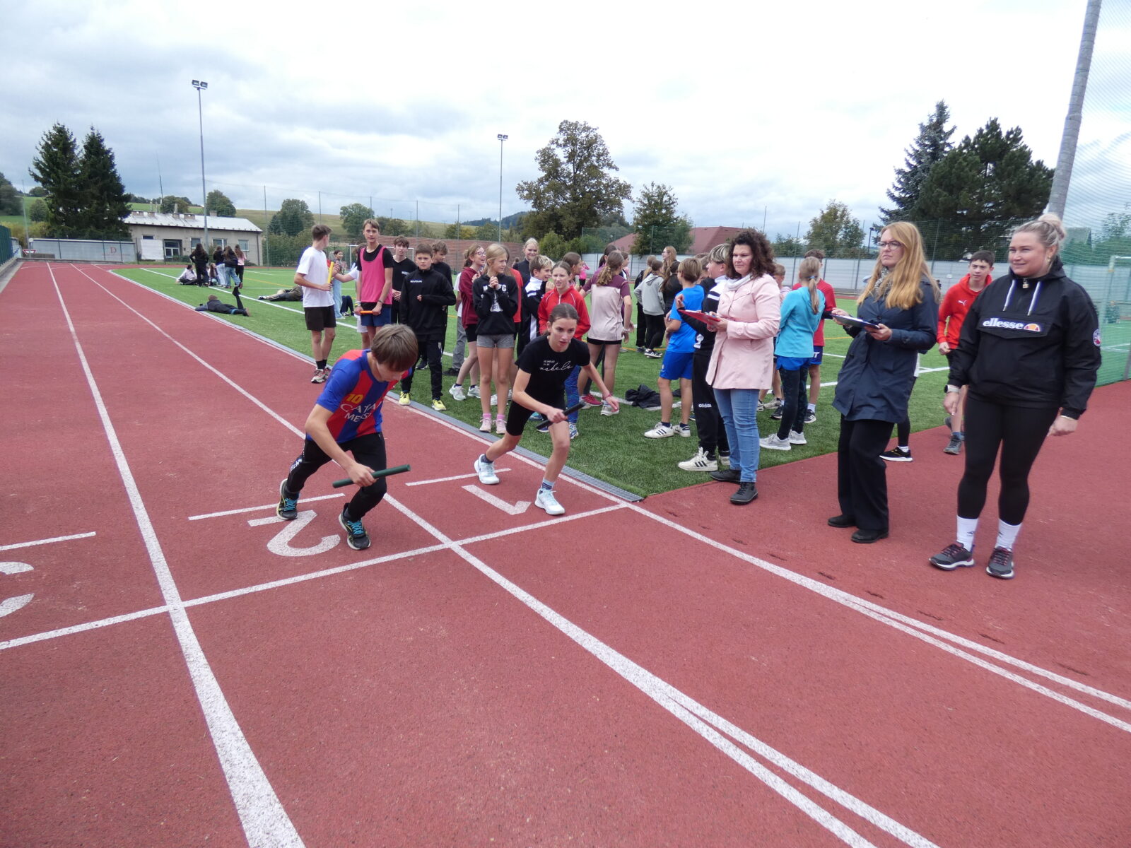 1.10.2025 PaedDr.Hana ŠťovíčkováV úterý 30. září 2025 proběhla tradiční soutěž Štafetové běhy E. Zátopka na II. stupně. V intervalu 20s vyběhly na trať 10x400m třídní štafety, v kterých musela být zastoupena minimálně 3 děvčata.