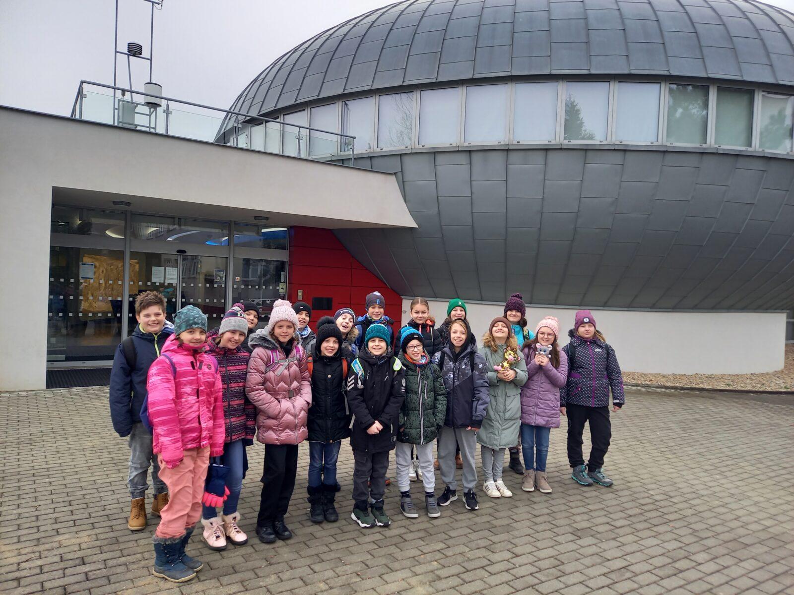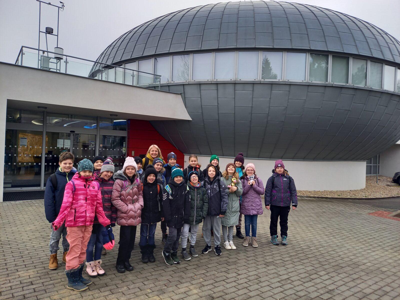Ve středu 1. února jsme se vydali na exkurzi do Hvězdárny a planetária v Hradci Králové. Naši návštěvu jsme zahájili v digitálním sálu, kde jsme získali od lektorů zajímavé informace o pozorování noční i denní oblohy. Následně jsme absolvovali virtuální cestu celou Sluneční soustavou. Po zodpovězení otázek nás lektorka pozvala do hvězdárny, ve které jsme si prohlédli kopuli s obřím dalekohledem. Zpátky domů jsme odjížděli spokojeni, plni zážitků a nových poznatků.