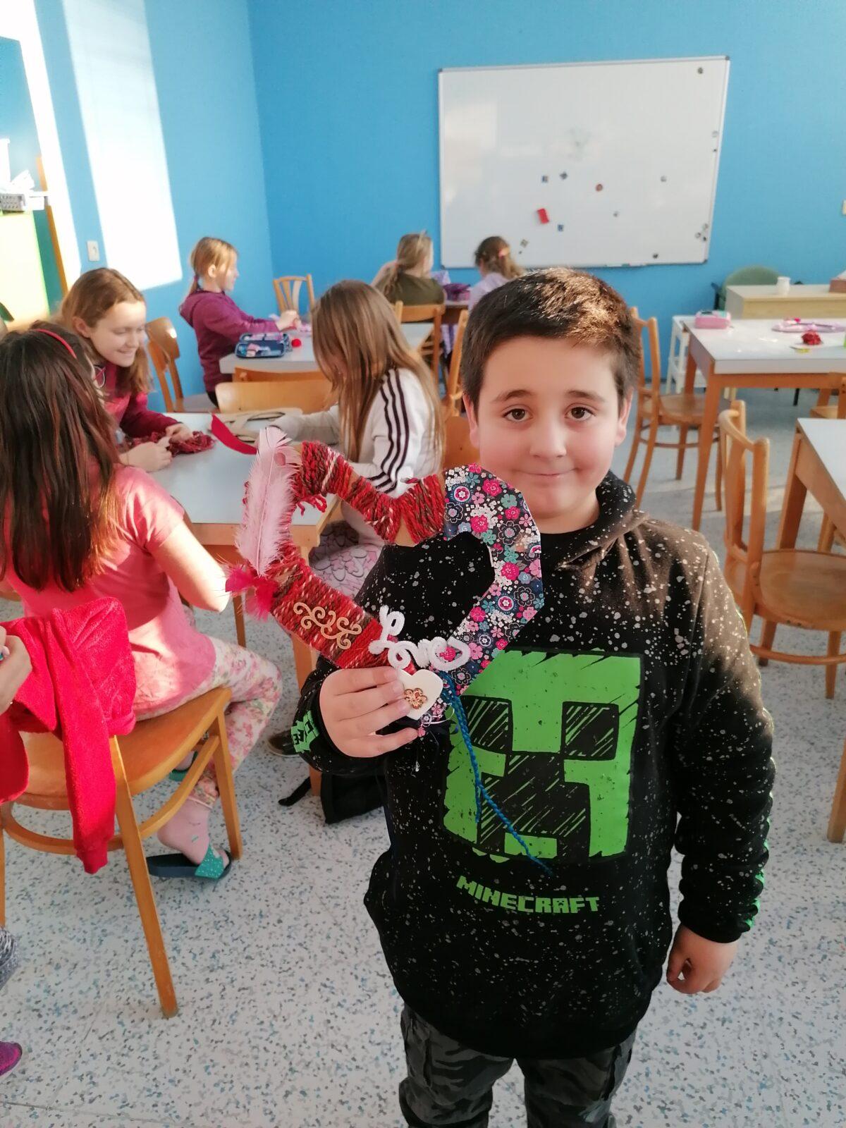 V úterý 7. 2. jsem se opět sešla se skupinkou tvořivých dětí. Téma jsem dopředu neprozradila, tak mě potěšila vysoká účast. Na 16 dětí čekalo srdce z papírového kartonu, vlna a pak spousta drobných ozdobiček, peříček, barevného papíru. Nebylo předem dané, jak má dekorace vypadat. Jen pár jednoduchých pokynů k postupu, bezpečnosti při práci. Děti si srdíčko tvořily podle svého. Bylo vidět, jak nad svým výsledným dílkem přimýšlí a zúročují, co už se naučily. Těším se na další tvoření Andrea Doutnačová.