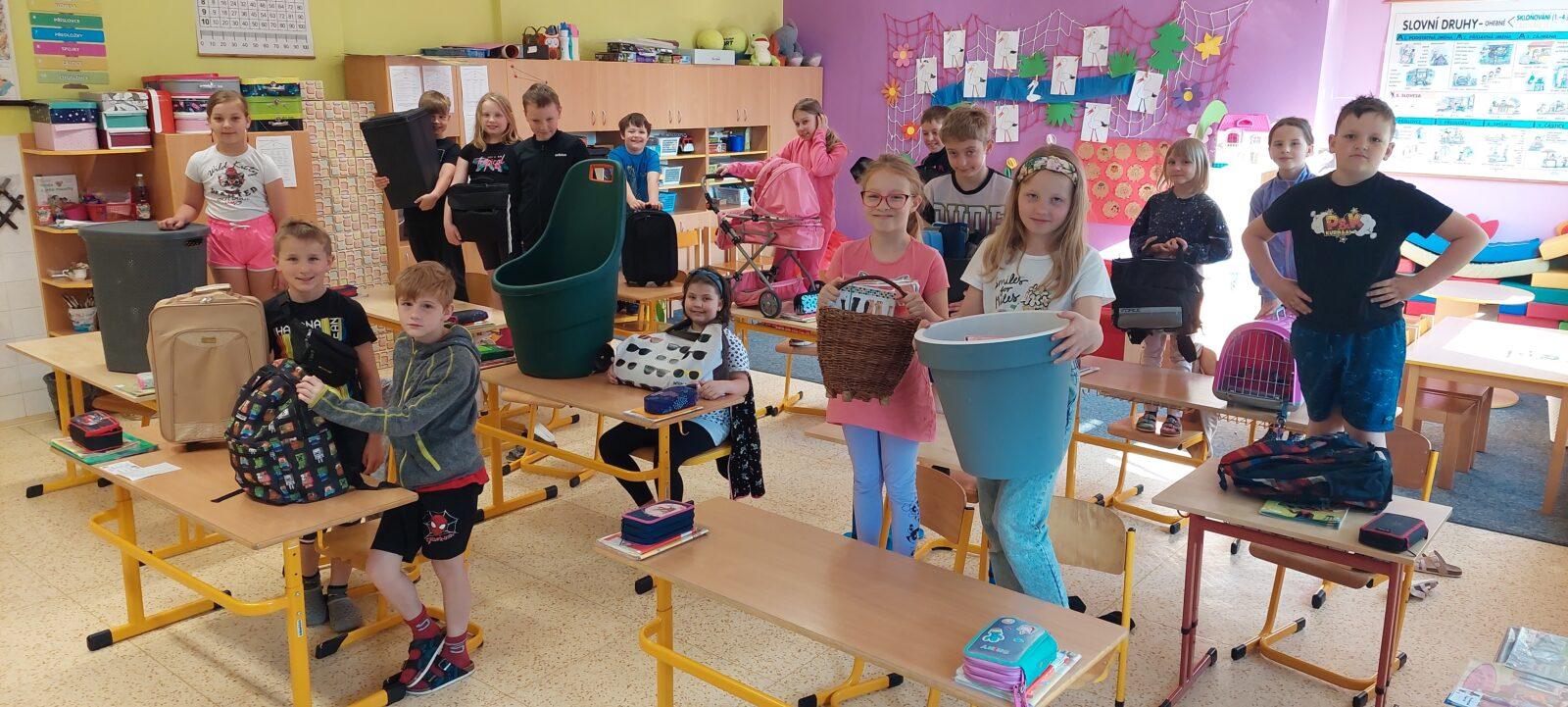V pátek 26. 5. proběhla na naší škole akce Žákovského parlamentu "Den bez aktovek." Děti nechaly školní aktovky a batohy doma a své potřeby do výuky si donesly v čemkoliv. Nápady byly zajímavé a originální. Ve škole se objevila popelnice, sekačka na trávu, dětský traktůrek, sušák na prádlo a spousta dalších netradičních příručních i objemnějších zavazadel :-)