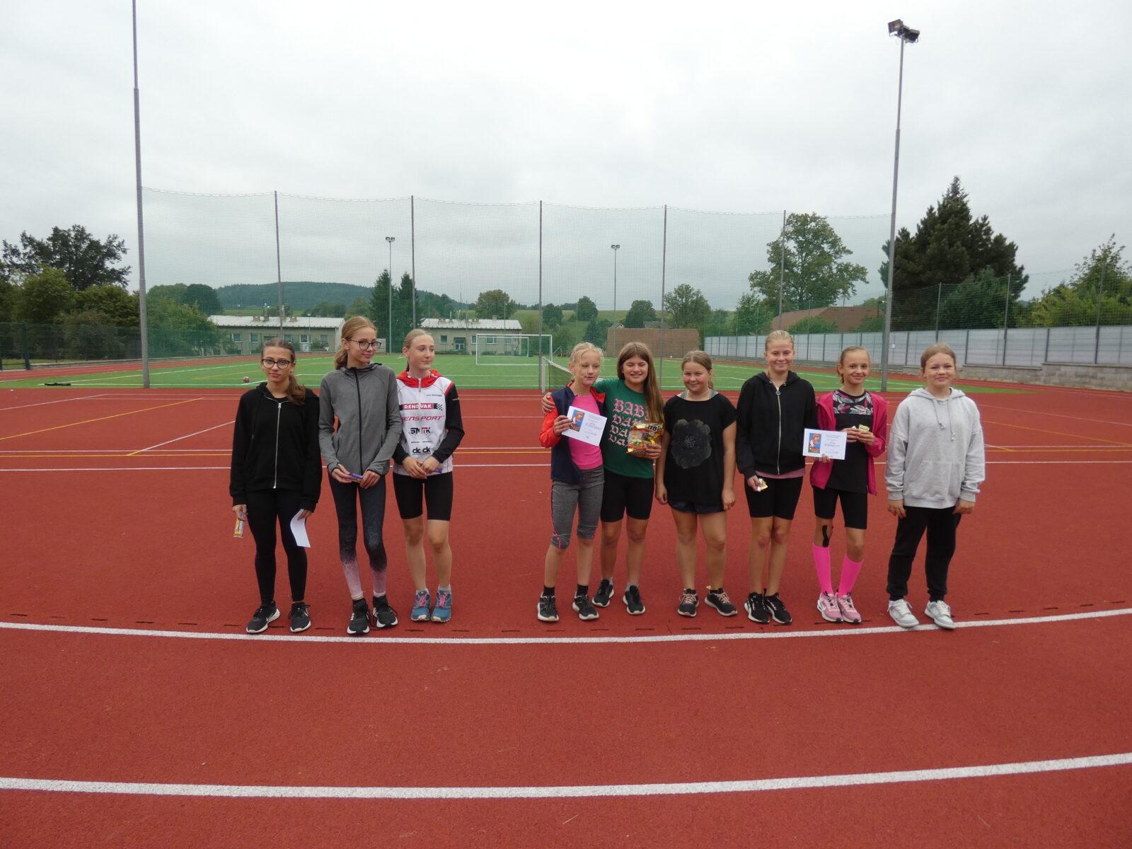 Konečně po třech letech jsme mohli uspořádat další ročník Atletického čtyřboje vesnických škol. V pátek 22. 9. jsme přivítali na "umělce" 4 školní týmy ze Základní školy Dolní Dobrouč, Klášterec nad Orlicí, Brandýs nad Orlicí a Lhoty u Potštejna. Celkem 60 závodníků soutěžilo ve 4 kategoriích. Počasí nám přálo a organizační tým našich deváťáků odvedl skvělou práci. Mladší děvčata Eliška Krejsová, Ester Valčíková a Viktorie Jeništová vybojovala pěkné 2. místo. A jejich nej výkony? V běhu na 60m získala prvenství Ester časem 9,83 s, ve skoku dalekém zas byla nejlepší ze všech ml. dívek Eliška výkonem 333 cm. Hod míčkem nebyla zrovna naše nejlepší disciplína, ale v běhu na 600m časem 2:12 min Ester skončila na 2. místě. V kategorii mladších hochů jsme měli jen 2 zástupce - Matěje Schauera ze 7. třídy a Jakuba Jirucha ze 6. třídy. Klukům to vůbec nevadilo a vybojovali 1. místo. Matěj dokázal získat prvenství hned ve třech disciplínách. V běhu na 60 m a to časem 8,76 s, v hodu míčkem výkonem 43,16 m a ve skoku dalekém 378 cm. Jen v běhu na 800m časem 2:58,7 min byl jeho výkon na čtvrtém místě :) Kubovi se nejvíce podařil skok daleký 347 cm a vytrvalostní běh časem 3:12,5 min. Mariánka Prausová, Gabriela Velínská a Nela Zigmundová dokázaly vybojovat 1. místo ve starších děvčatech. V běhu na 60 m Gabča dosáhla svým výkonem druhého času 9,6 s a Nelča zaběhla za 9,67 s. Ve skoku dalekém zabodovala Gabča s 338 cm a Nelča 336 cm. Zvláště vydařen byl vytrvalostní běh na 800m, kde dokázala získat nejvíce bodů Mája časem 2:53,7 min a hned za ní Gabča 2:55,3 min. Což rozhodlo o jejich prvenství :) Nejvíce bodů a tudíž 1. místo vymakali naši starší kluci Kuba Kalous, Dan Cindr a Šimon Adamec. A zde jsou jejich nej výkony. V běhu na 60 m exceloval Dan časem 8,21 - nejrychlejší atlet závodu a třetí čas získal Šíma 8,4 s. Kuba už nemohl bodovat, ale jeho čas 8,52 s by na pátém místě:) Nejdelší skok měl opět Dan 487 cm, hned po něm Šíma 452 cm. Ve vrhu koulí dosáhl druhého nejlepšího výkonu v této kategorii Šíma 955 cm, krásný vrh:) Dan zabodoval výkonem 870 cm. Ve vytrvalostním běhu na 1 km měl třetí nejlepší čas Kuba 3:26,9 min a dále bodoval Dan časem 3:33,1 min. A nyní určitě tušíte, kdo letos vyhrál :) Pořadí škol: