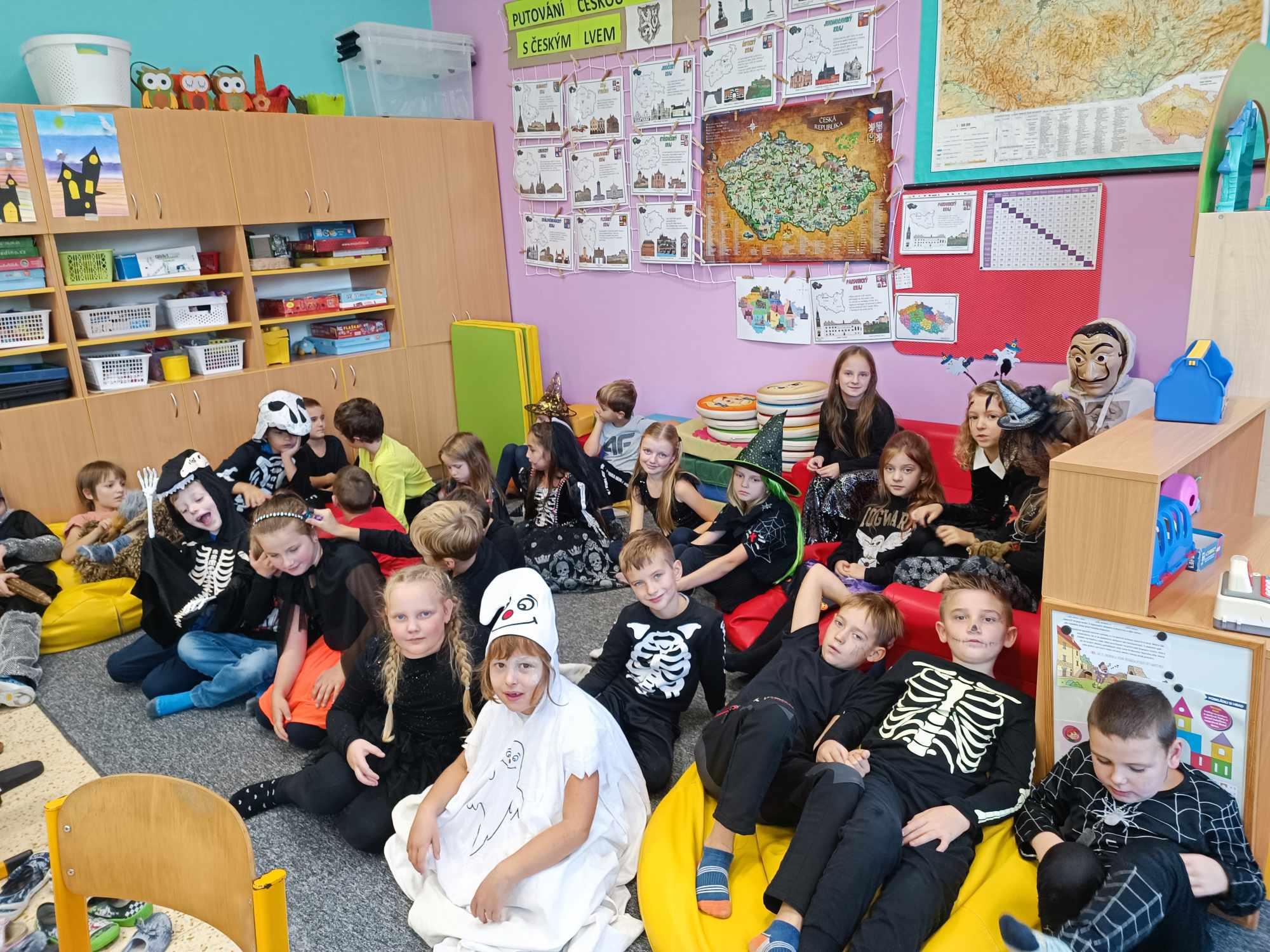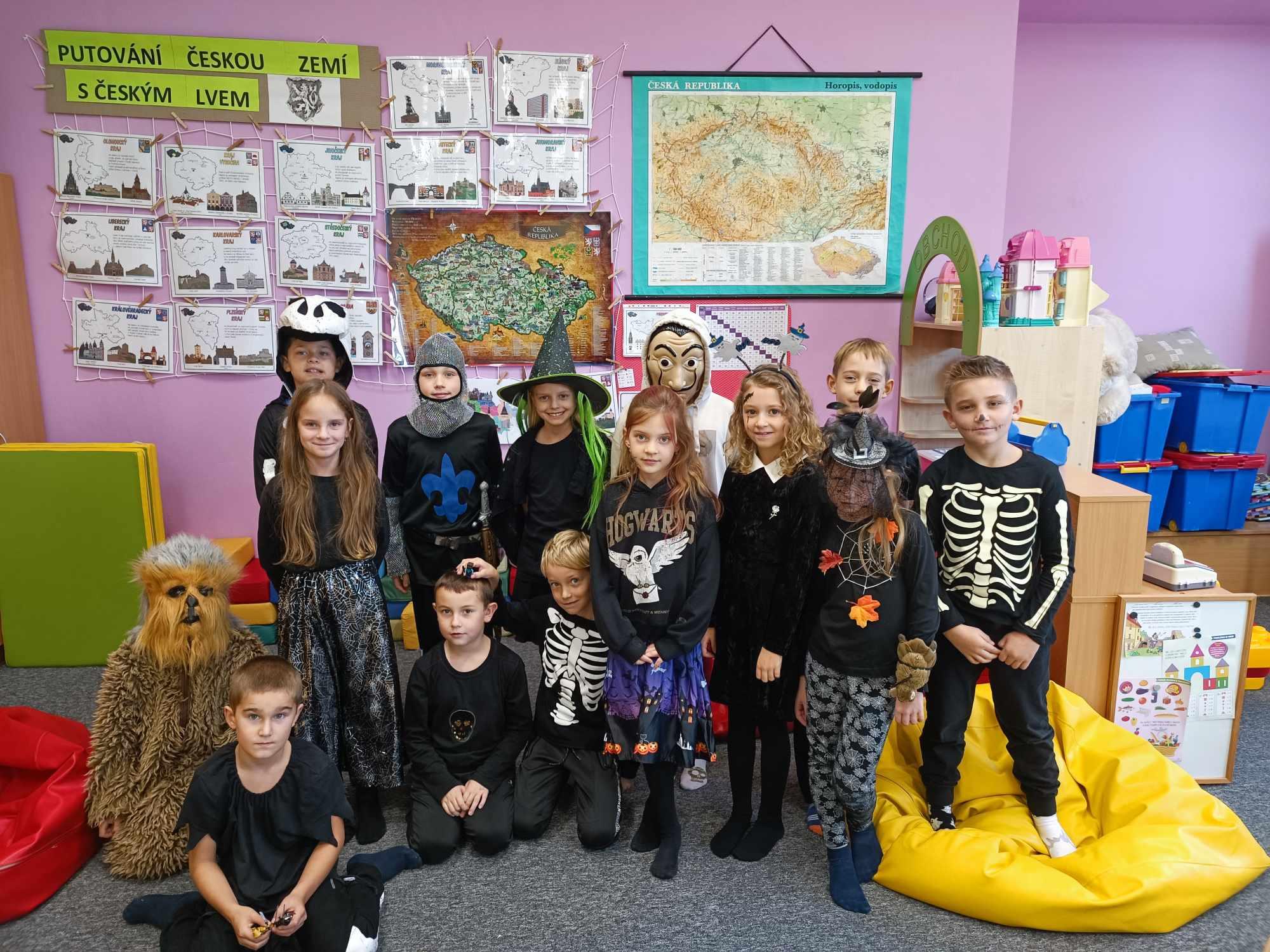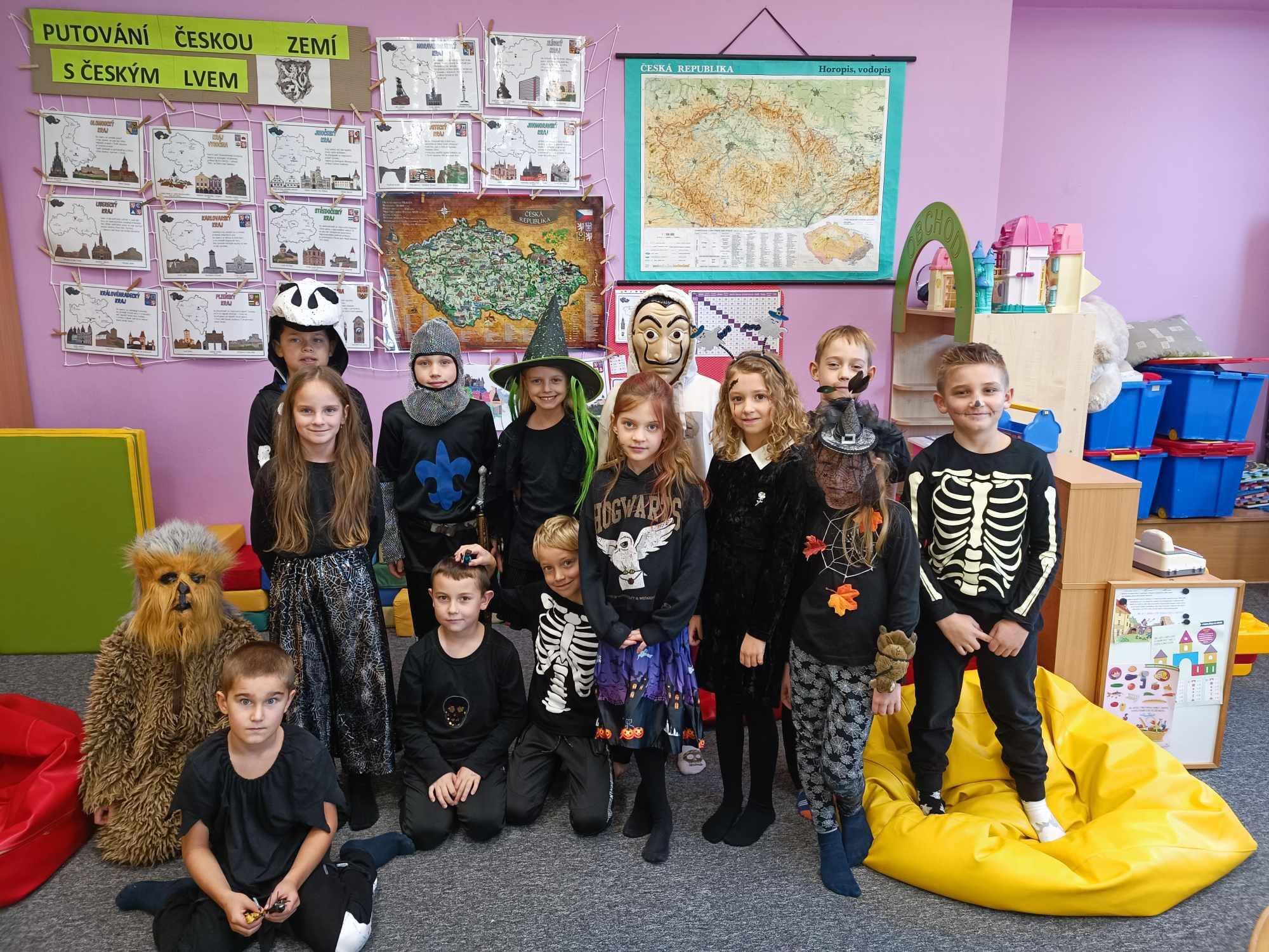 V měsíci září a říjnu jsme se postupně seznámili se svými spolužáky a přivítali jsme prvňáčky ve školní družině. Vzhledem ke krásnému počasí jsme si užívali her a činností venku. Měli jsme také seznamovací sportovní odpoledne. Tvořili jsme, soutěžili, také jsme si zorganizovali odpoledne deskových her. Nechyběla ani tradiční DRAKIÁDA. Přípravy a výzdobou na Halloween jsme zakončili přehlídkou masek a „Halloweenskou párty.“
