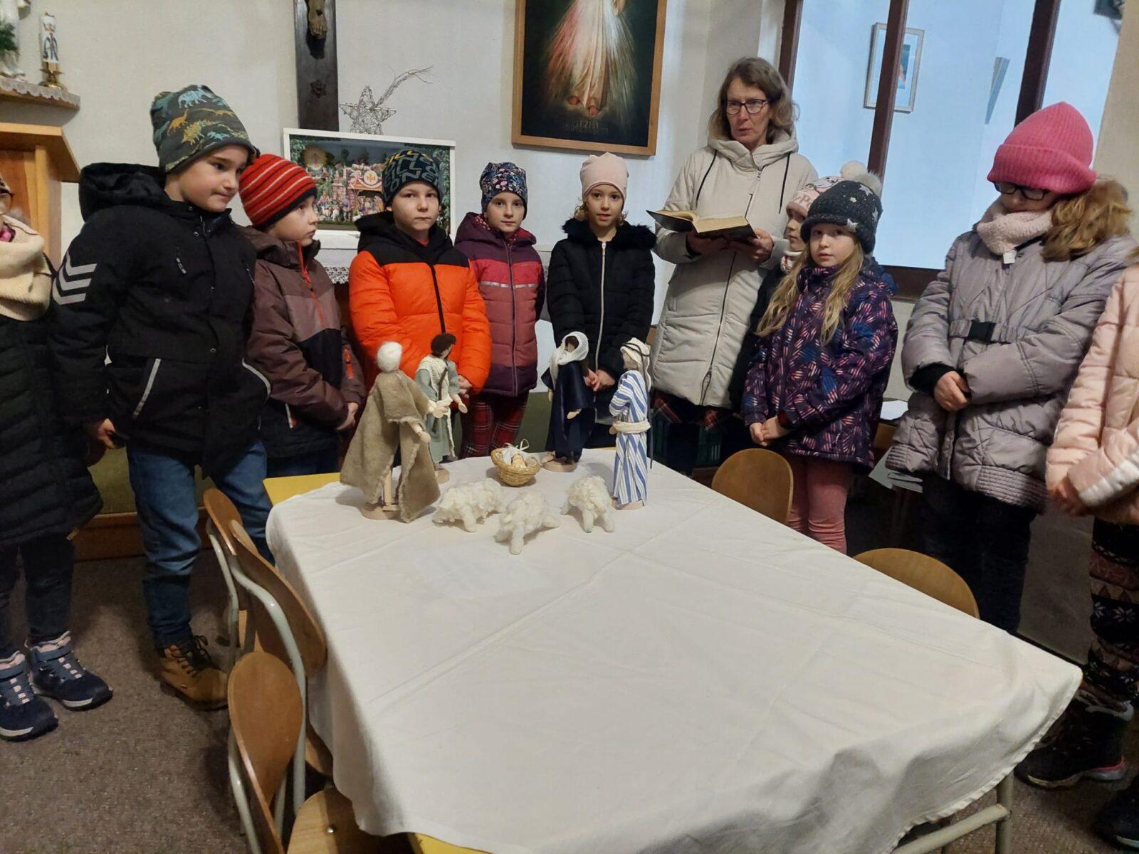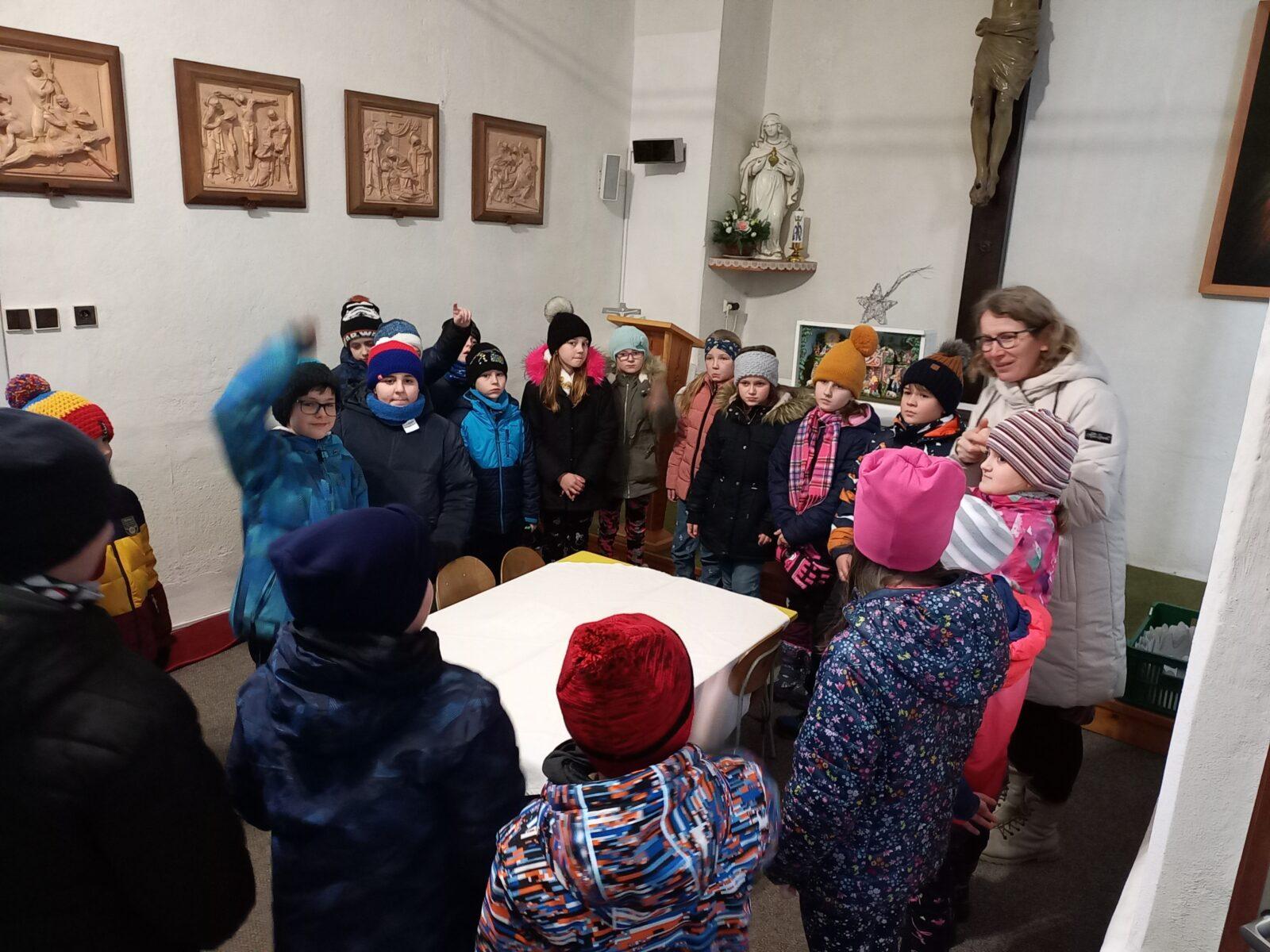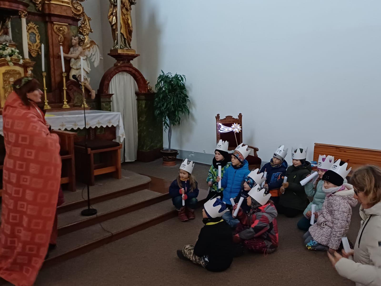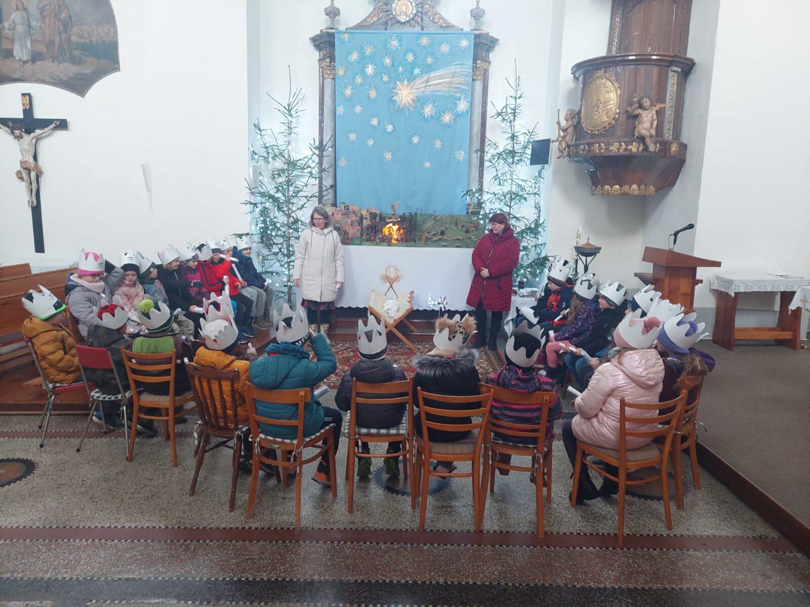 V pátek 5. 1. se naši prvňáčci, druháčci a třeťáčci vydali do místního kostela, kde pro ně byl připraven hravý a zároveň poučný program, jež dětem přiblížil příběh "Tří králů." Děti se na malou chvíli staly "mudrci" a společně putovaly za hvězdou, která je přivedla do Betléma. Paní Poslušné a paní Pecháčkové patří velké poděkování za pěkně promyšlený program, který děti zaujal a potěšil.