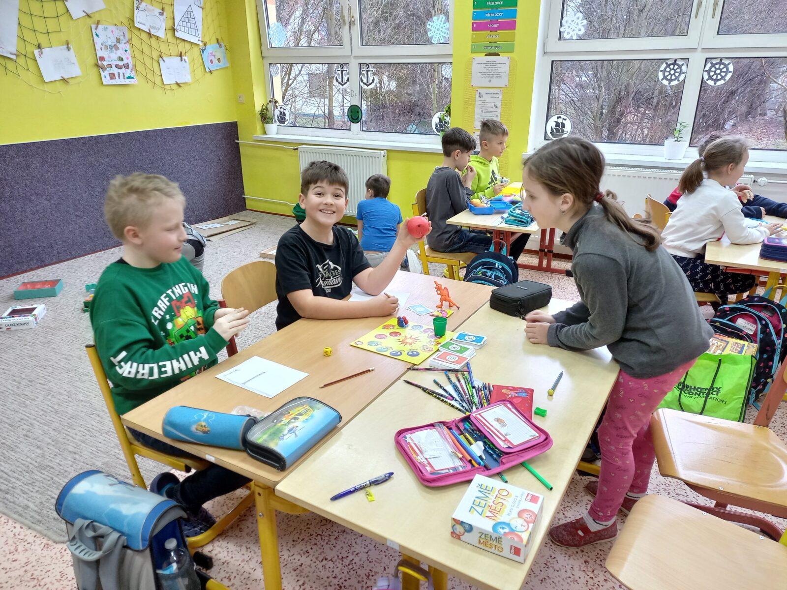 K příležitosti pololetního vysvědčení jsme v naší třídě uspořádali již tradiční a oblíbenou akci "Škola (s) hrou." Třeťáčci trávili část vyučování v zapálené herní atmosféře. Vyzkoušeli jak tradiční společenské hry (Aktivity, Z pohádky do pohádky, Tik tak bum!), tak i méně známé taktické a postřehové hry (Šťastný candát, Rummikub, Ulož svoje knihy). V průběhu dopoledne panovala ve třídě přátelská a veselá atmosféra, která nám pomohla upevnit kamarádské třídní vazby :-) Eva Adamcová a kolektiv žáků 3. třídy