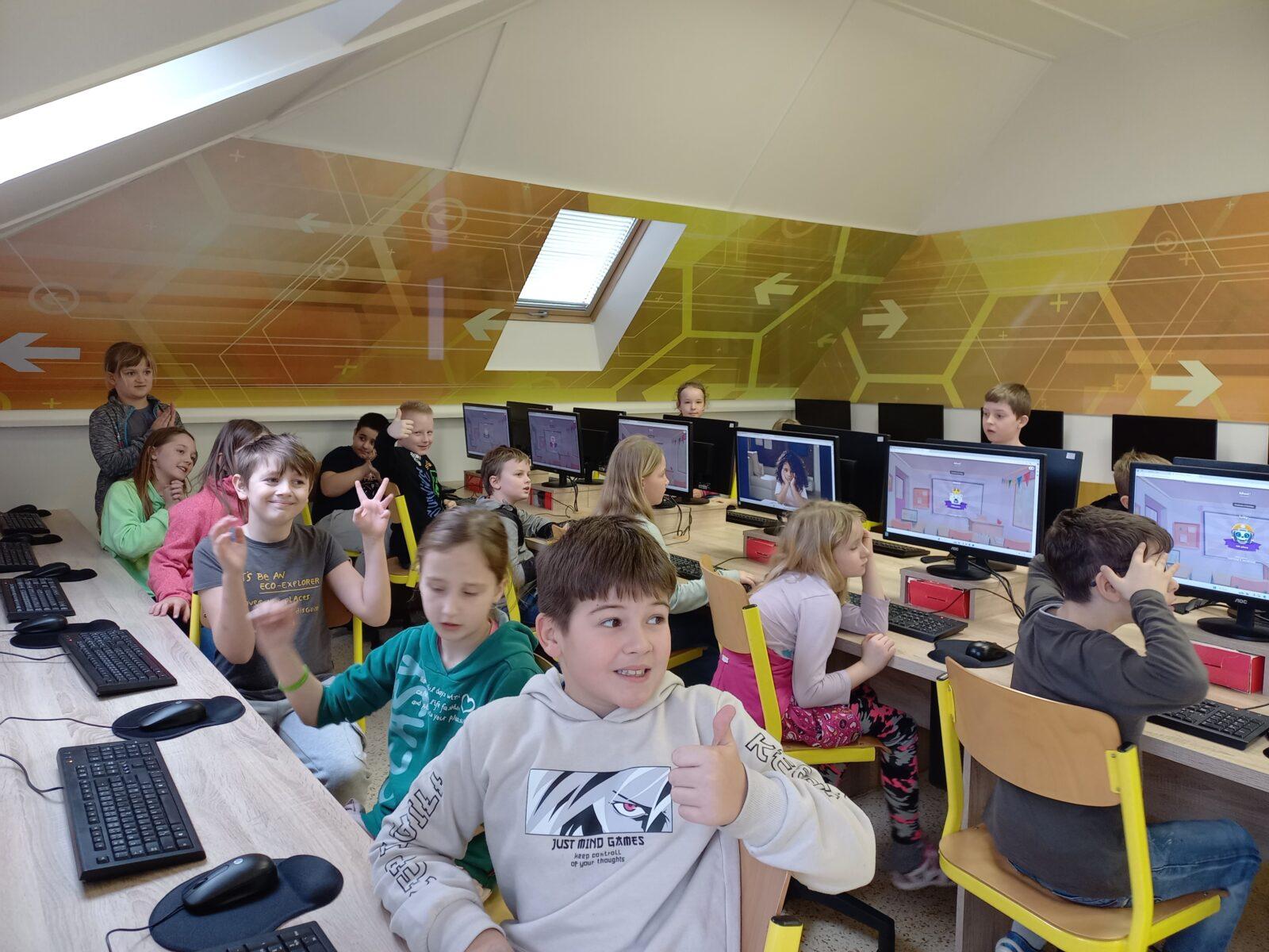 V pátek 23. 2. se třeťáčci na hodinu AJ přesunuli ze školních lavic do moderně vybavené počítačové učebny. Prostřednictvím hravé aplikace "Kahoot" procvičovali svou slovní zásobu. Při této aktivitě se ukázalo, že rozhodující není jen dobrá znalost jazyka, ale také postřeh a rychlost reakcí. Eva Adamcová a Kamila Hrušková
