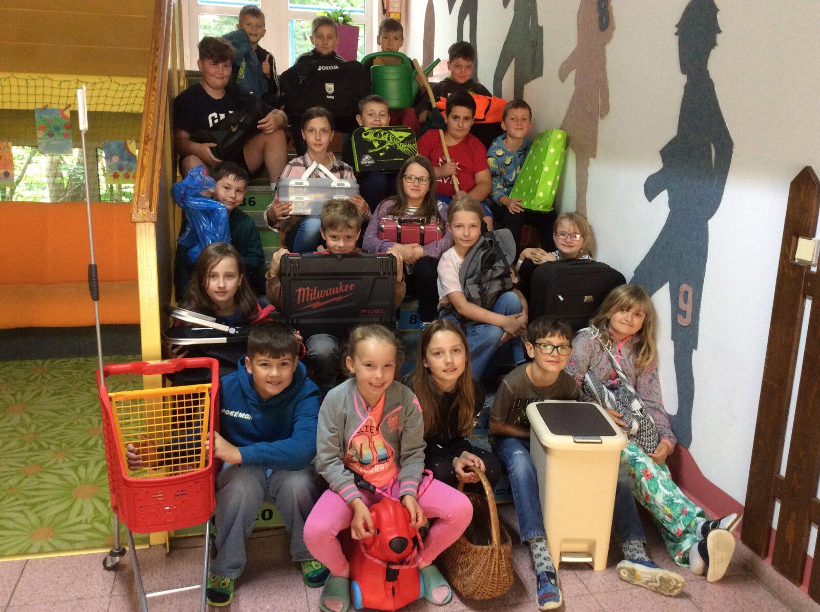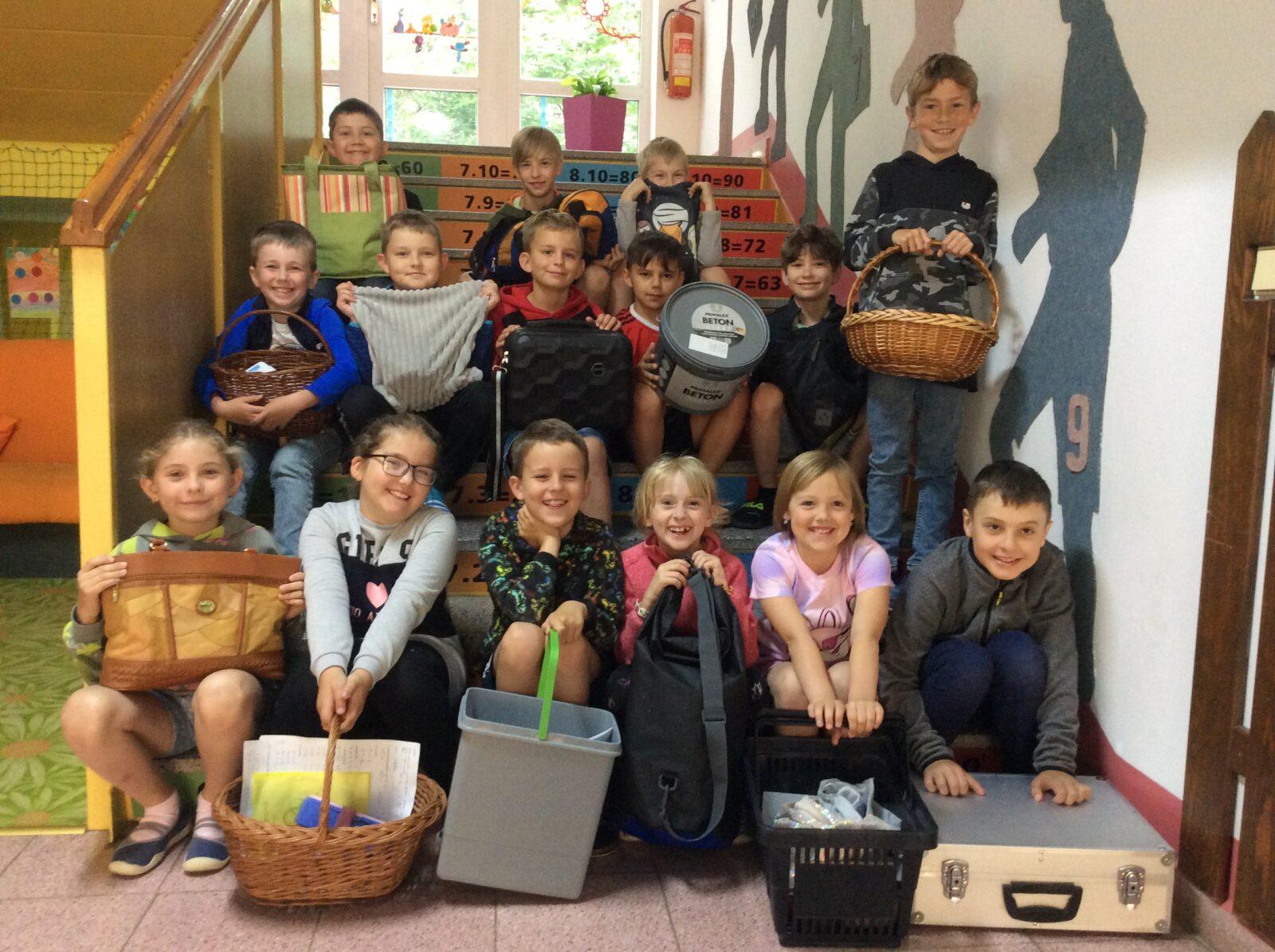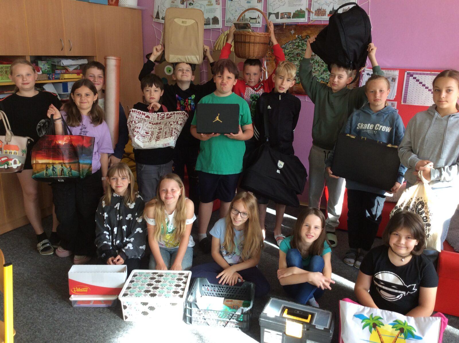 V pátek 14. června proběhla na naší škole již tradiční akce Žákovského parlamentu „Den bez aktovek.“ Děti nechaly školní aktovky a batohy doma a své potřeby do výuky si donesly v čemkoliv. Nápady byly zajímavé, originální a mnohdy i vtipné. Ve škole se objevila truhla, dětská autosedačka, tatrovka, šlapací traktůrek, tůčko, nákupní košík a spousta dalších netradičních příručních zavazadel. Všichni jsme si tento den užili🙂