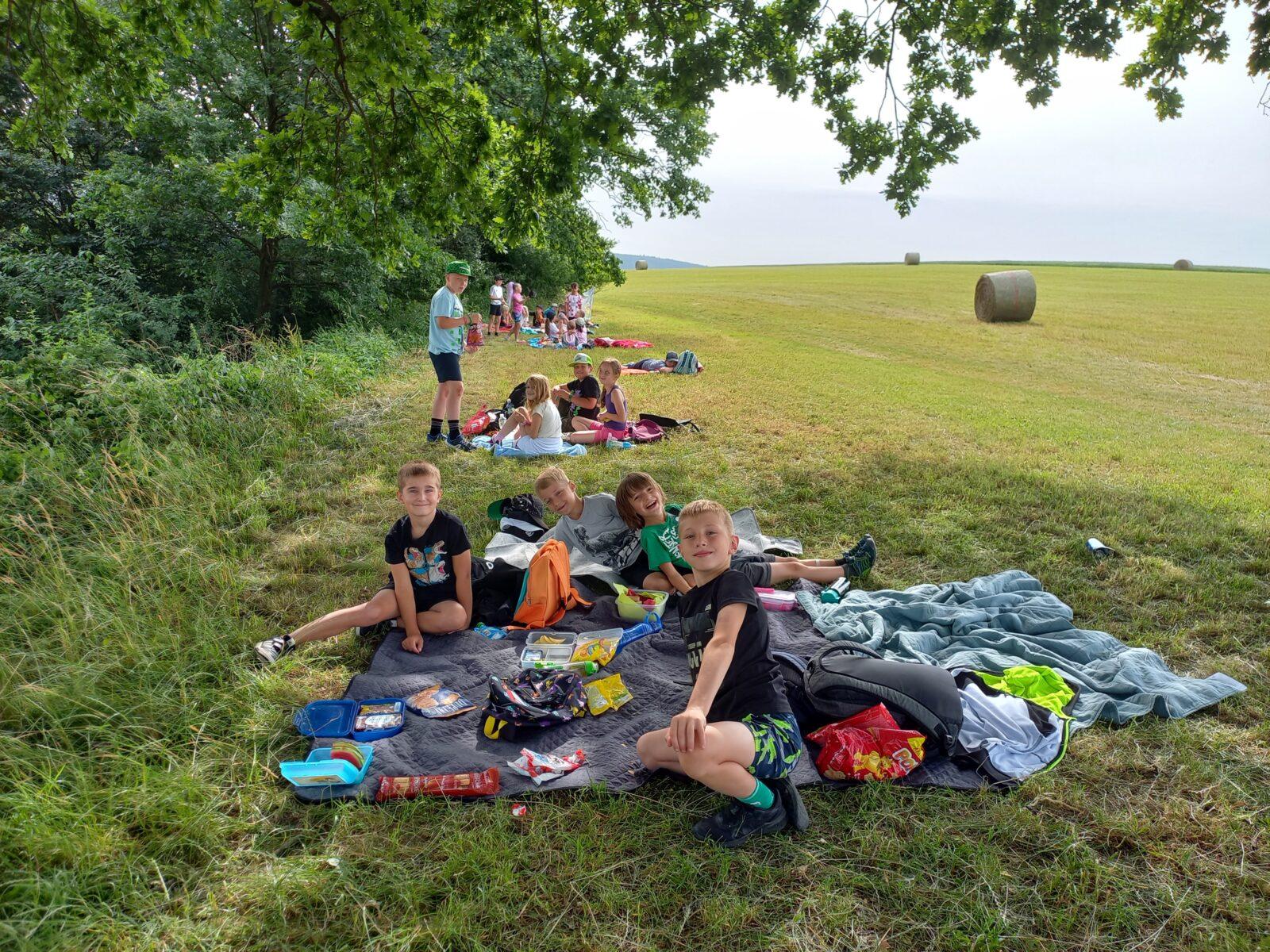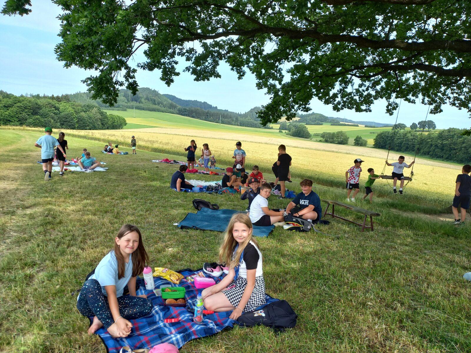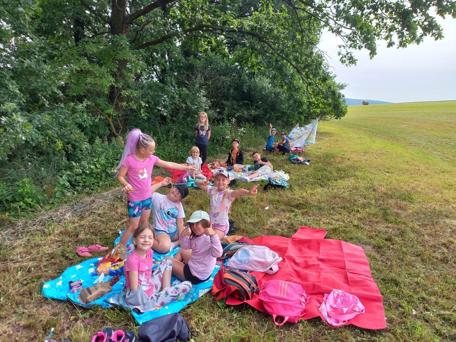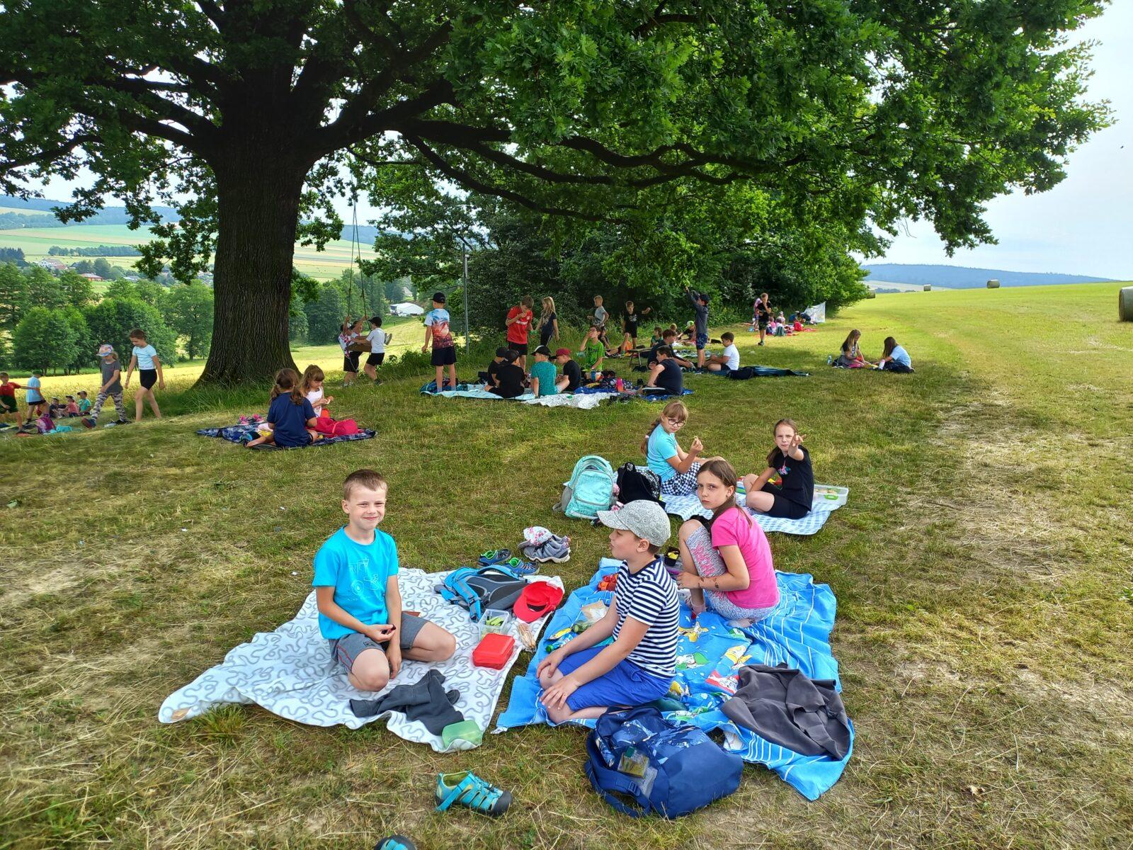 Ve čtvrtek 27. 6. strávili žáci 1., 2.A, 2.B a 3. třídy příjemné dopoledne v nádherném koutě Libchav "u dubu". V rámci společného pikniku si děti pochutnaly na donesených dobrotách a zahrály si různorodé pohybové hry. Počasí nám přálo, tak jsme si všichni užili příjemné dopoledne s kamarády.