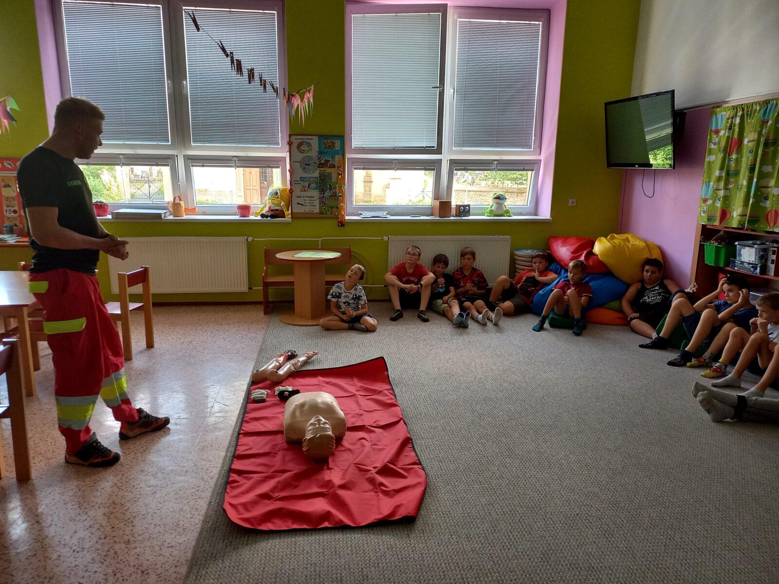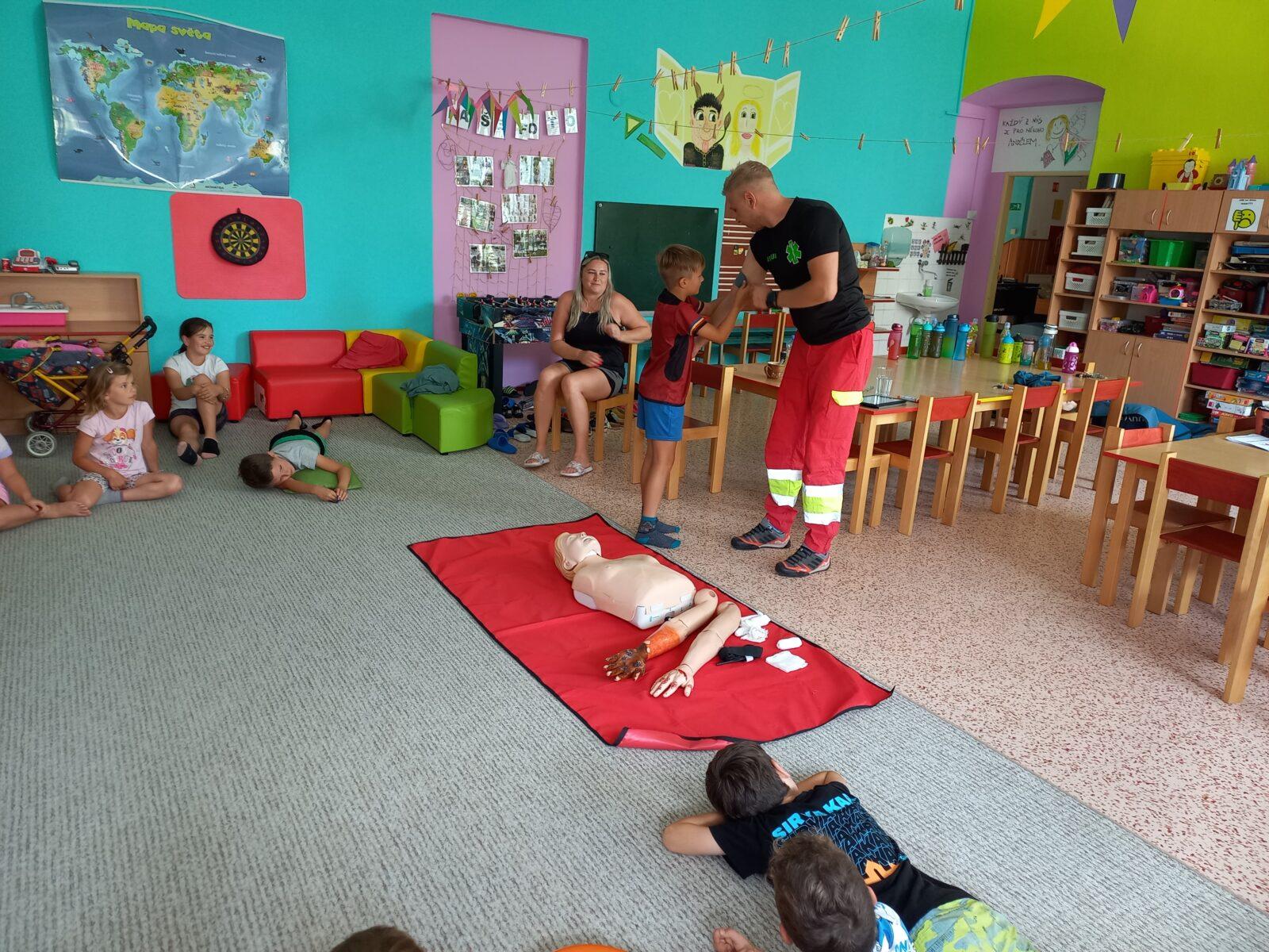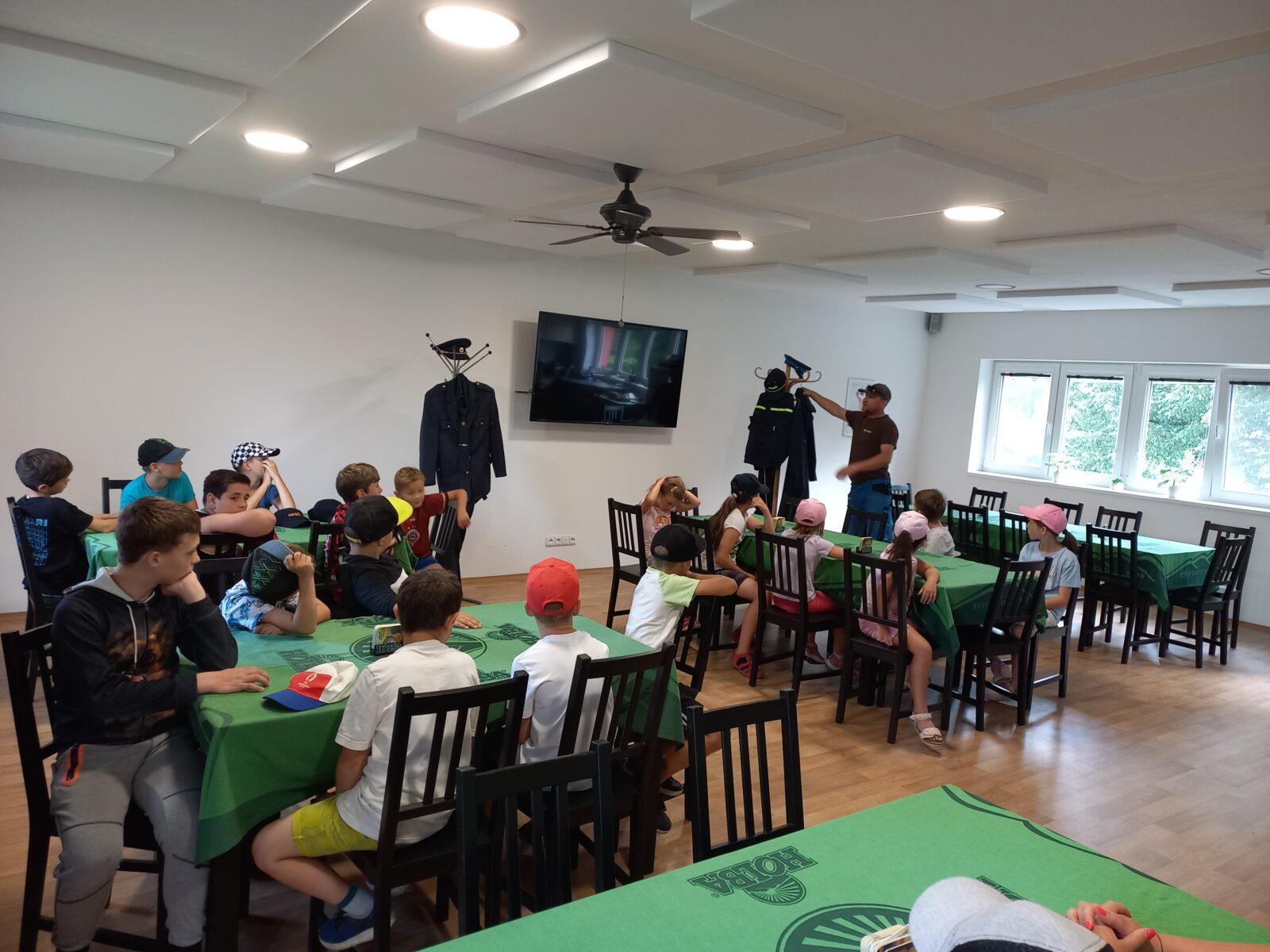 Motto čtvrtého dne příměstského tábora "Týden plný zábavy" zní "Poznáváme". Dnešní ráno jsme zahájili narozeninovým přáním (Máro, vše nejlepší :-), a pak jsme vyrazili na prohlídku hasičské zbrojnice v Dolních Libchavách. Tam nás přivítal velitel JSDH Marián Čeman, který nám ukázal nejen prostory hasičárny, ale také bohaté vybavení hasičského vozu. Moc děkujeme za zajímavé dopoledne a mnoho nových informací, které si odnášíme. Po obědě jsme přivítali pana Lišku z ČČK Ústí nad Orlicí, který nás seznámil s jednoduchými základy první pomoci pro děti. I jemu patří poděkování za důležité informace, které mohou zachránit lidský život. Část odpoledne jsme poté věnovali výrobě táborové medaile a malování na kamínky. Dnešní třešničkou na dortu byla závěrečná hasičská týmová hra - stříkání na cíl pomocí džberové stříkačky. Eva Adamcová a Denisa Chlajnová