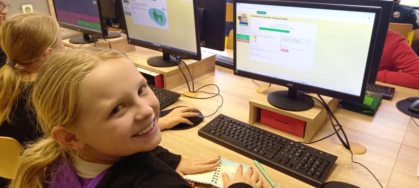 Bobřík informatiky Ve dnech 4. – 15. 11. 2024 probíhala na naší škole soutěž "Bobřík informatiky". Soutěžící odpovídají na otázky z oblasti informatického myšlení, algoritmizace, porozumění informacím, práce s daty, informačních systémů a modelování, z oblasti digitálních technologií a společenských aspektů jejich použití. Za školu jsme soutěžili v kategorii Mini – 4. třída, Benjamin – 5. a 6. třída, Kadet – 7. a 8. třída a Junior pro 9. třídu. Celkově se zapojilo 155 žáků a Bobříka v soutěži získali: Ve 4. třídě Daniel Čermák, Eliška Kaplanová, Leona Klosová, Matouš Sokol a Jan Petroszki V 5. třídě Jiří Čermák, Nicol Ešpandrová, Ema Kratochvílová, Karolína Štěchová, Matěj Peterka V 6.A třídě Jakub Cihlář, Natálie Hrnčířová, Ema Chadimová, Andrea Novotná, Klaudie Toušková V 6.B třídě Jana Kacálková, Ella Chládková, Vít Pěknic, Ester Jiskrová V 7. třídě Matěj Štěch, Eliška Bezdíčková, Miroslav Zápotocký, Vojtěch Hodr a Anežka Čápová V 8. třídě Šimon Krejsa, Oliver Martinec a Izabela Petrláková V 9.A třídě Filip Kacálek V 9.B třídě Šimon Suchomel a Jakub Krčál Blahopřejeme!