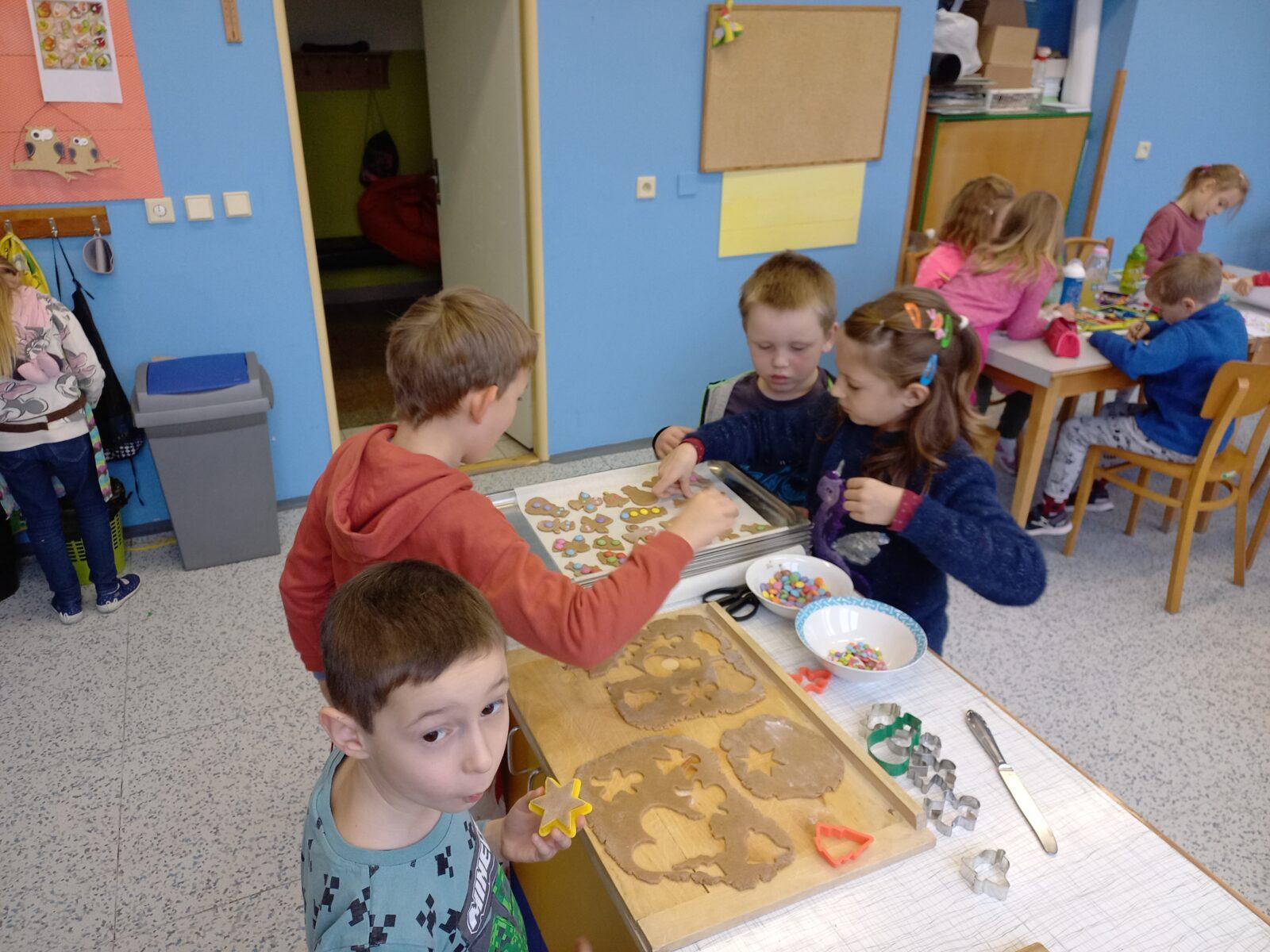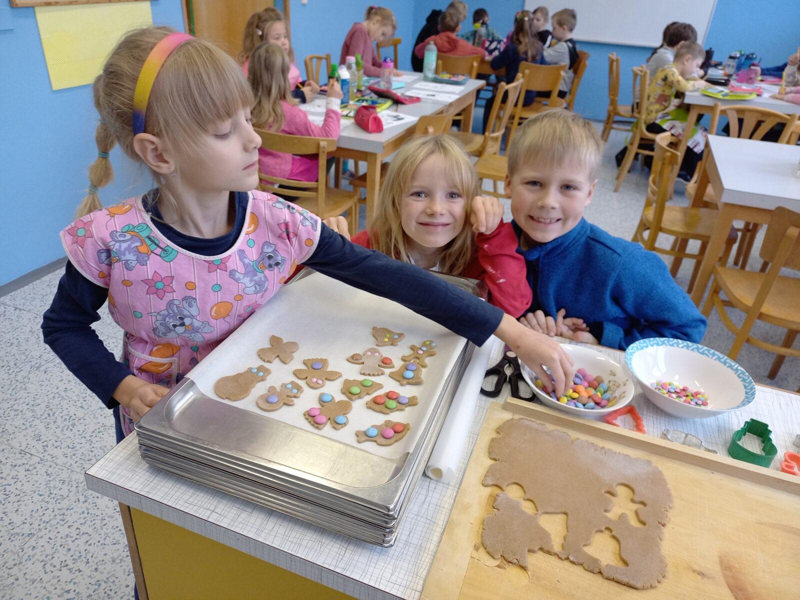 Prvňáčci pečou na vánoční jarmark