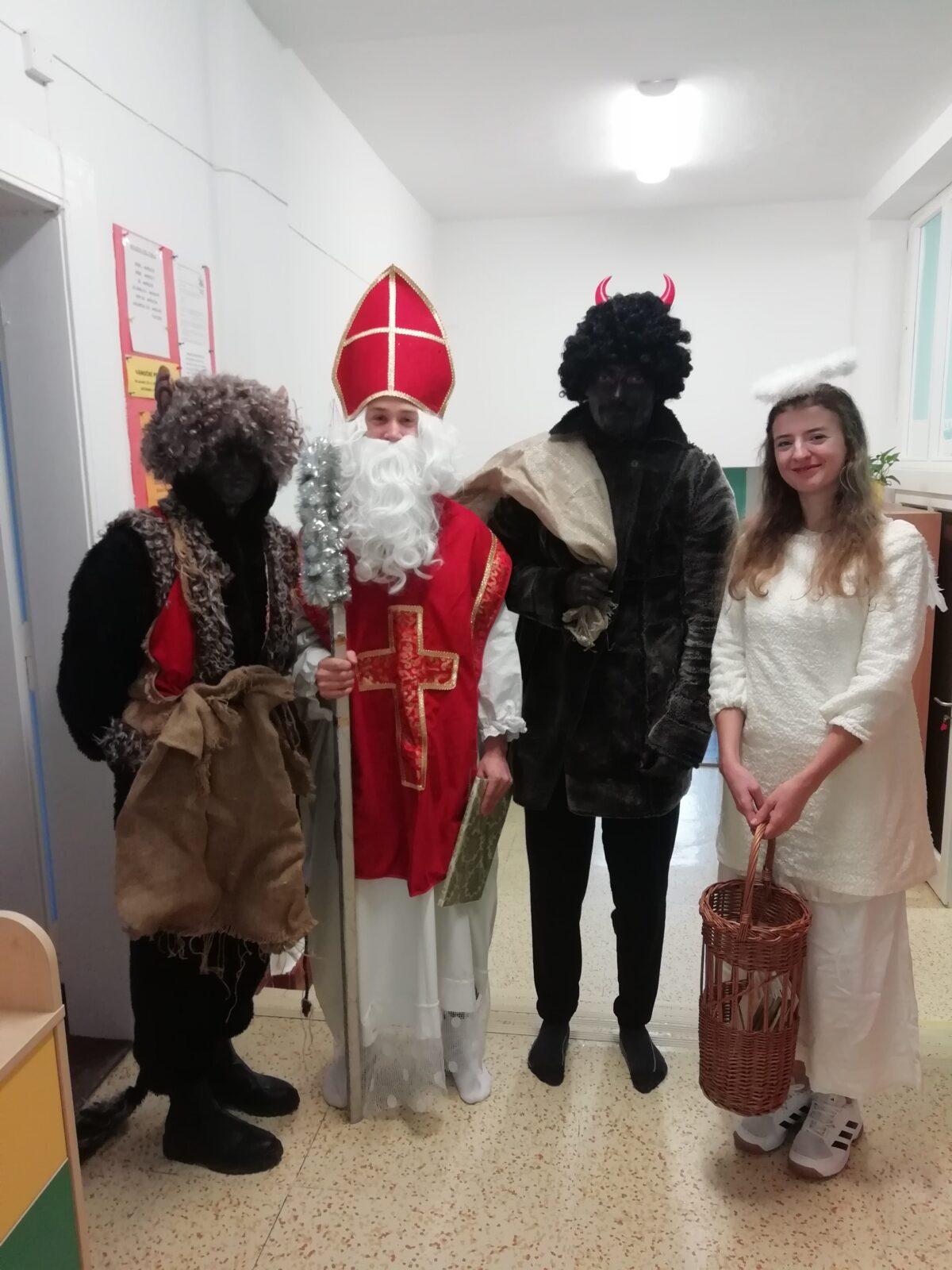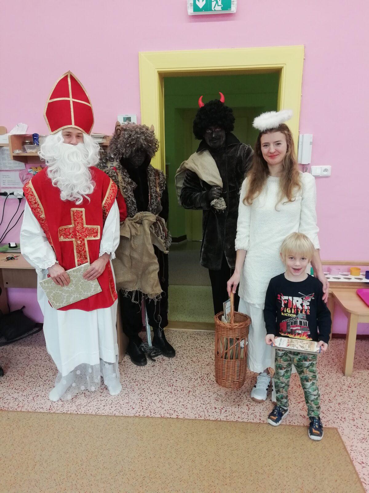 Mikuláš, anděl a čertíci ve školce