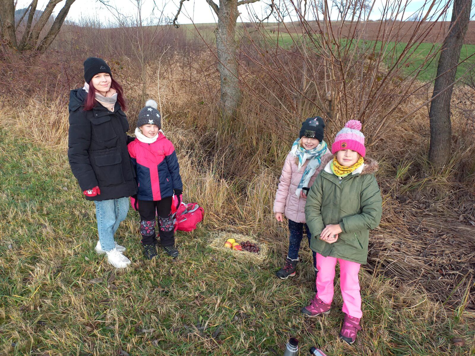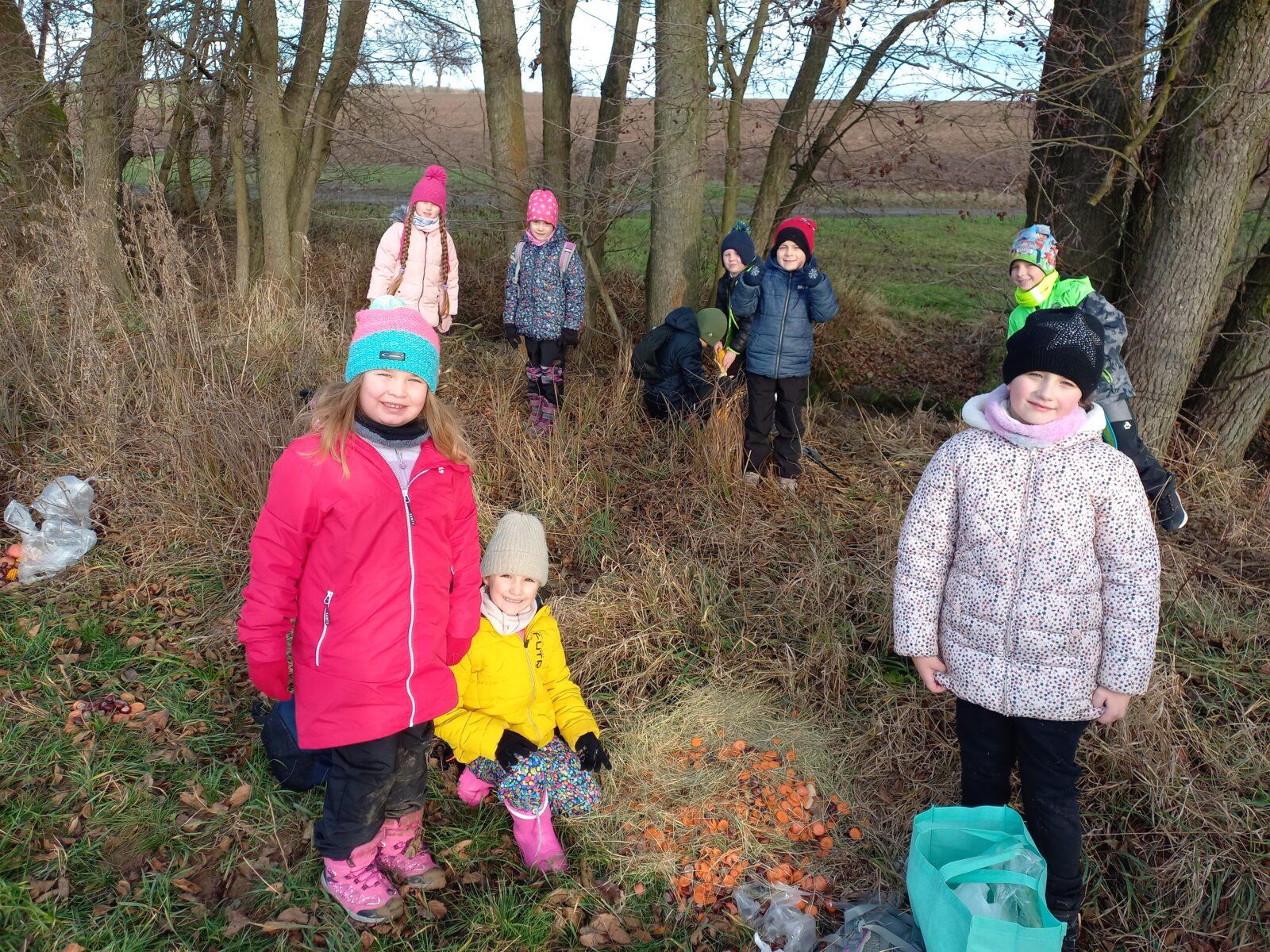 Ve čtvrtek 19. 12. se celý 1. stupeň naší školy vydal do krásné přírody v okolí Libchav v rámci tradiční akce "Vánoční les". Prvostupňoví žáci donesli pro lesní zvěř na přilepšenou mnoho "dobrot". V zimním období zvěři příroda mnoho nenabízí, proto ji žáci obdarovali např. senem, jablky, mrkví nebo kaštany. Po celou dobu nás provázelo sluníčko, lepší počasí jsme si ani nemohli přát :-)