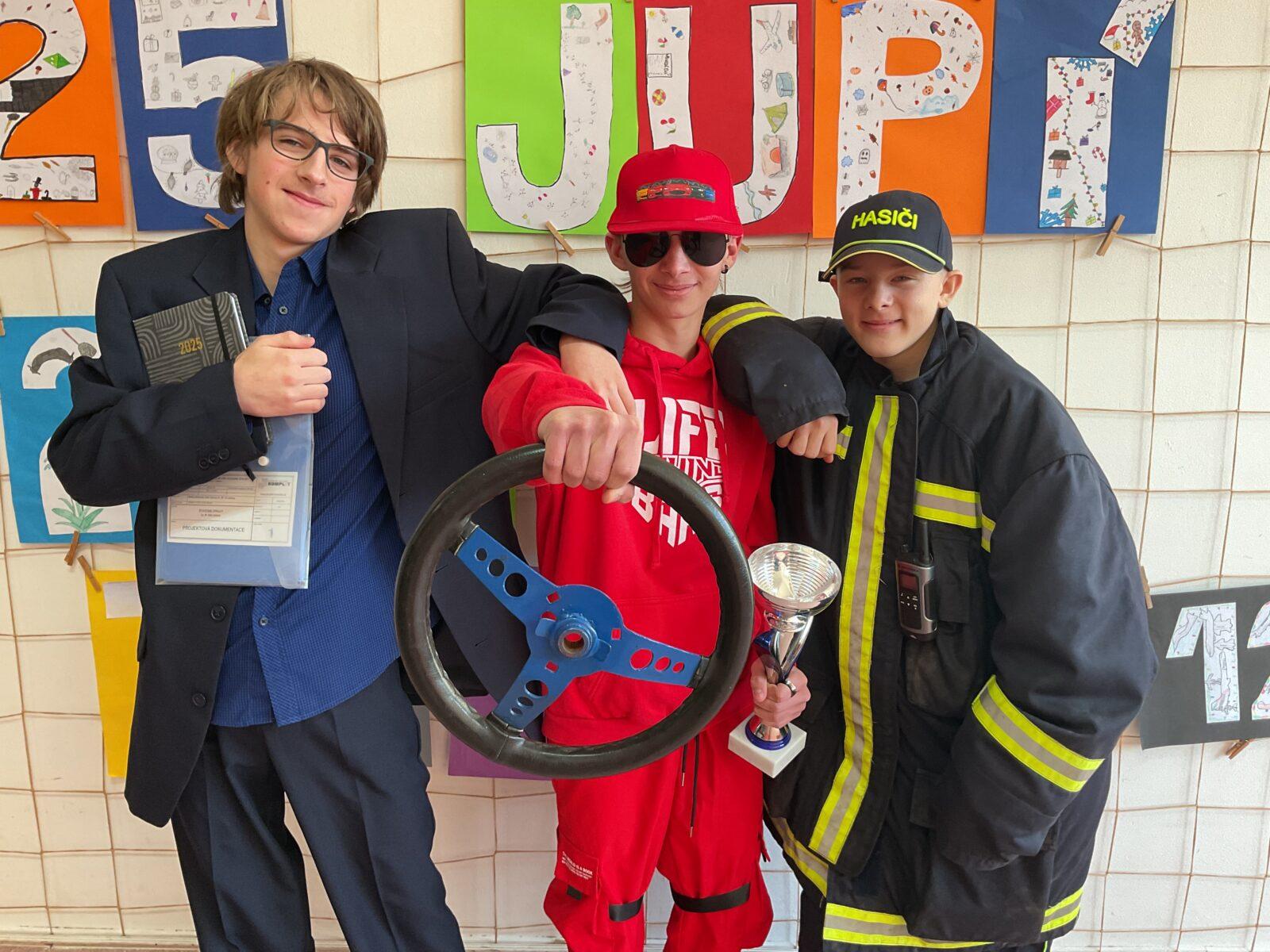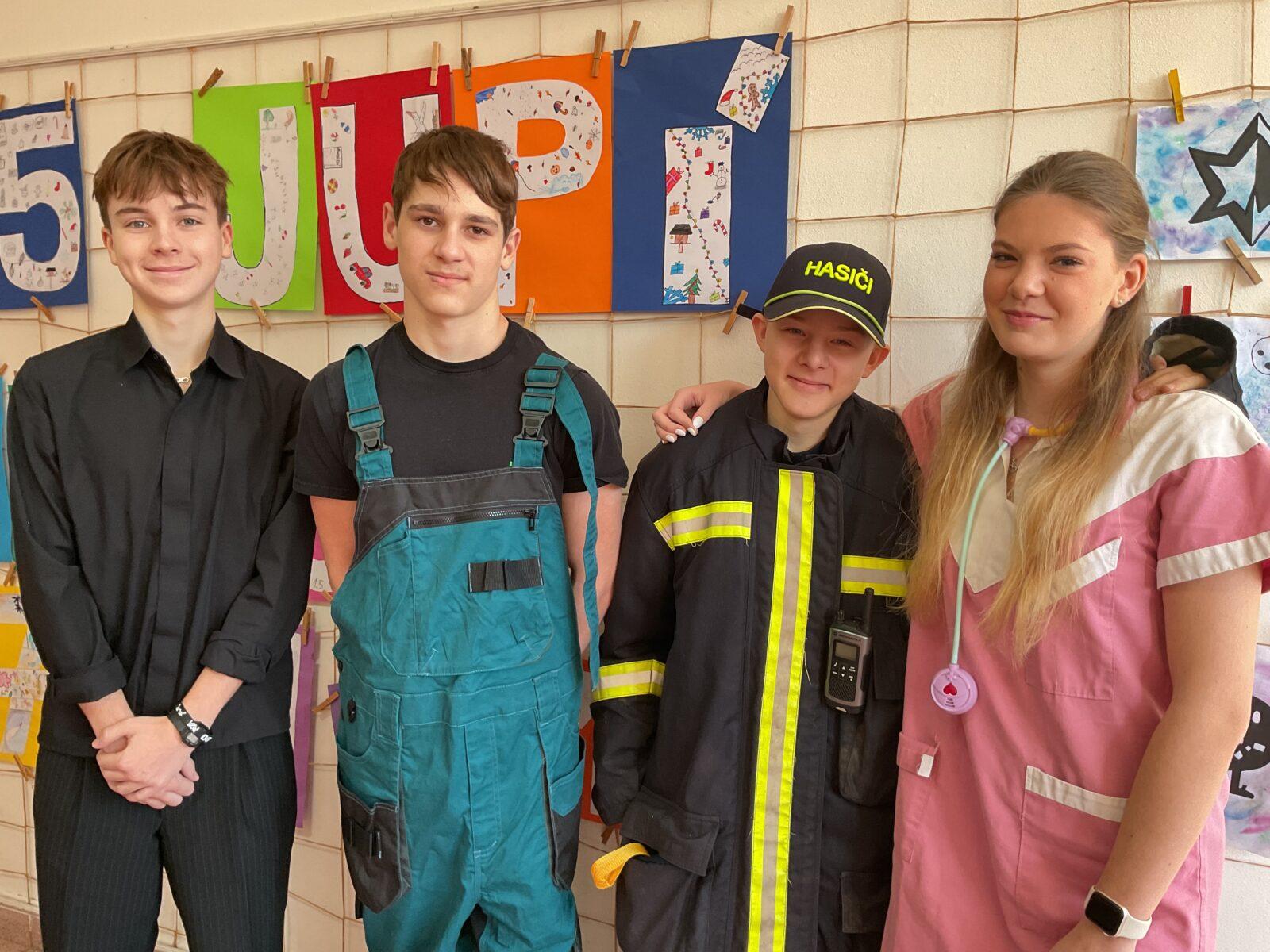 Ve čtvrtek 30. ledna se na naší škole odehrálo netradiční předávání pololetního vysvědčení. Žáci devátých tříd se rozhodli pojmout tento den s humorem a kreativitou. Dorazili do školy v kostýmech představujících jejich vysněné budoucí povolání. Nechyběly ani originální a vtipné nápady, které dokazovaly, že naši deváťáci mají opravdu fantazii.