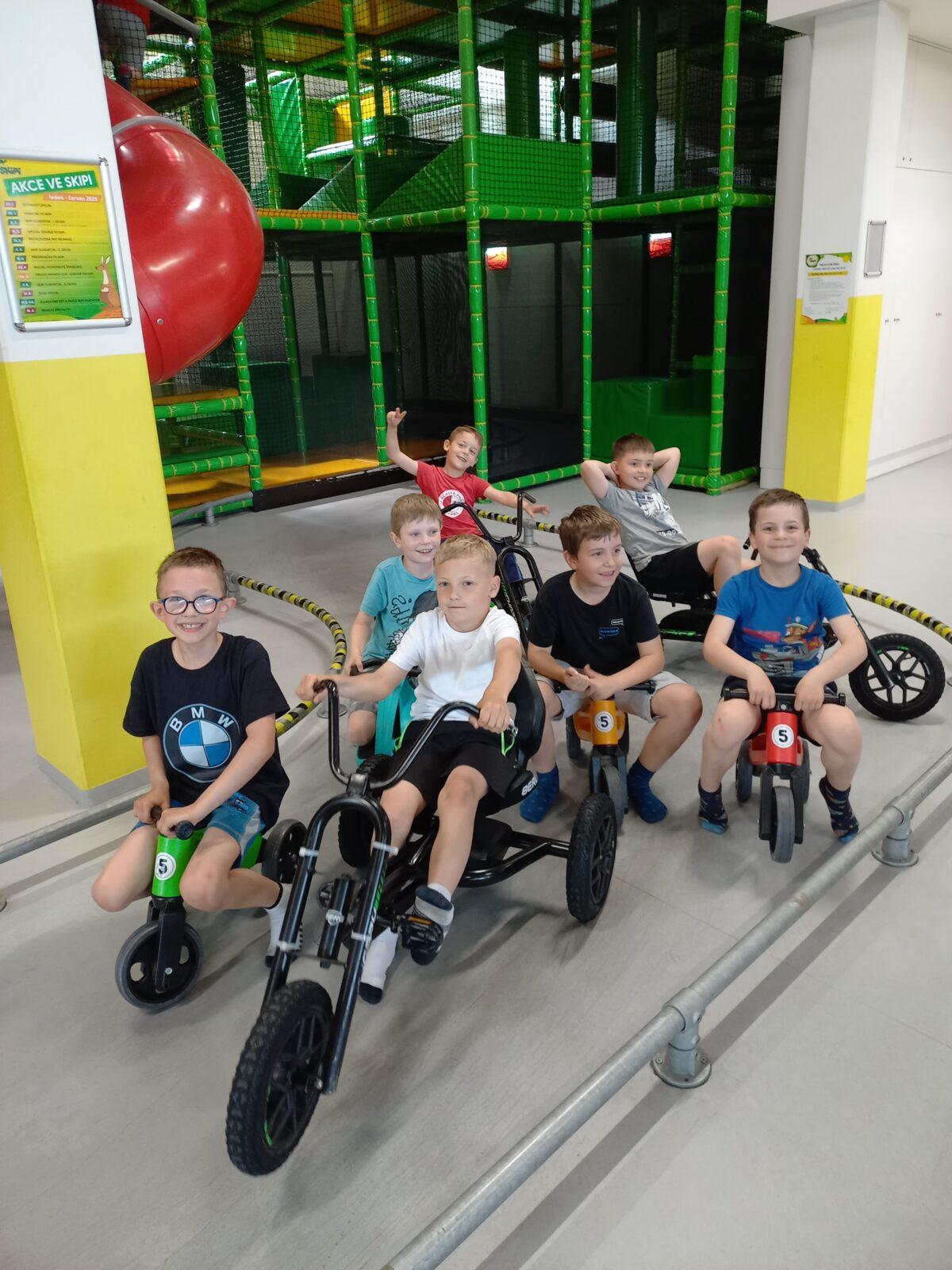 Ve čtvrtek 5. 6. vyrazili prvňáčci s velkým nadšením na třídní výlet do zábavného parku Skipi v Letohradě. Po příjemné cestě vlakem si děti zadováděly nejprve na vnitřním hřišti, aby si udělaly pořádný hlad. Po vydatném obědě využily ještě atrakcí na přilehlém venkovním hřišti. Před odjezdem domů stihly ještě sladkou tečku ve formě nanuku. Celé dopoledne nad námi sice visely černé mraky, ale počasí nám přálo. Na zpáteční cestě se dětem usadily na tvářích spokojené úsměvy, které byly milým důkazem povedeného výletu :-)