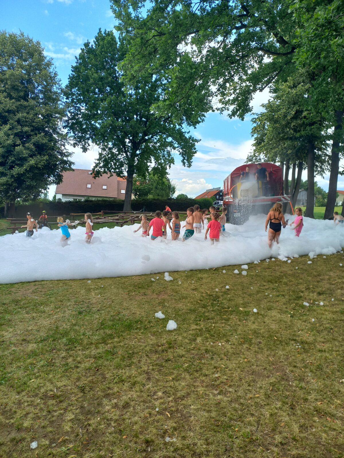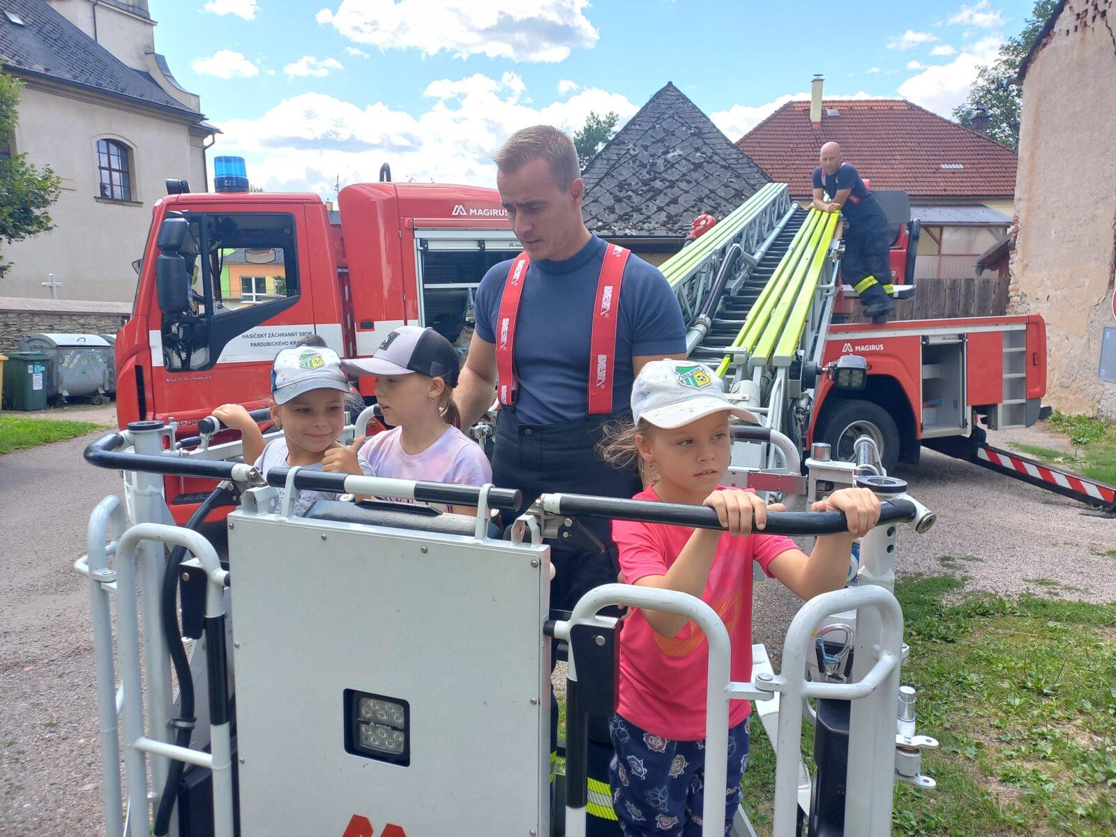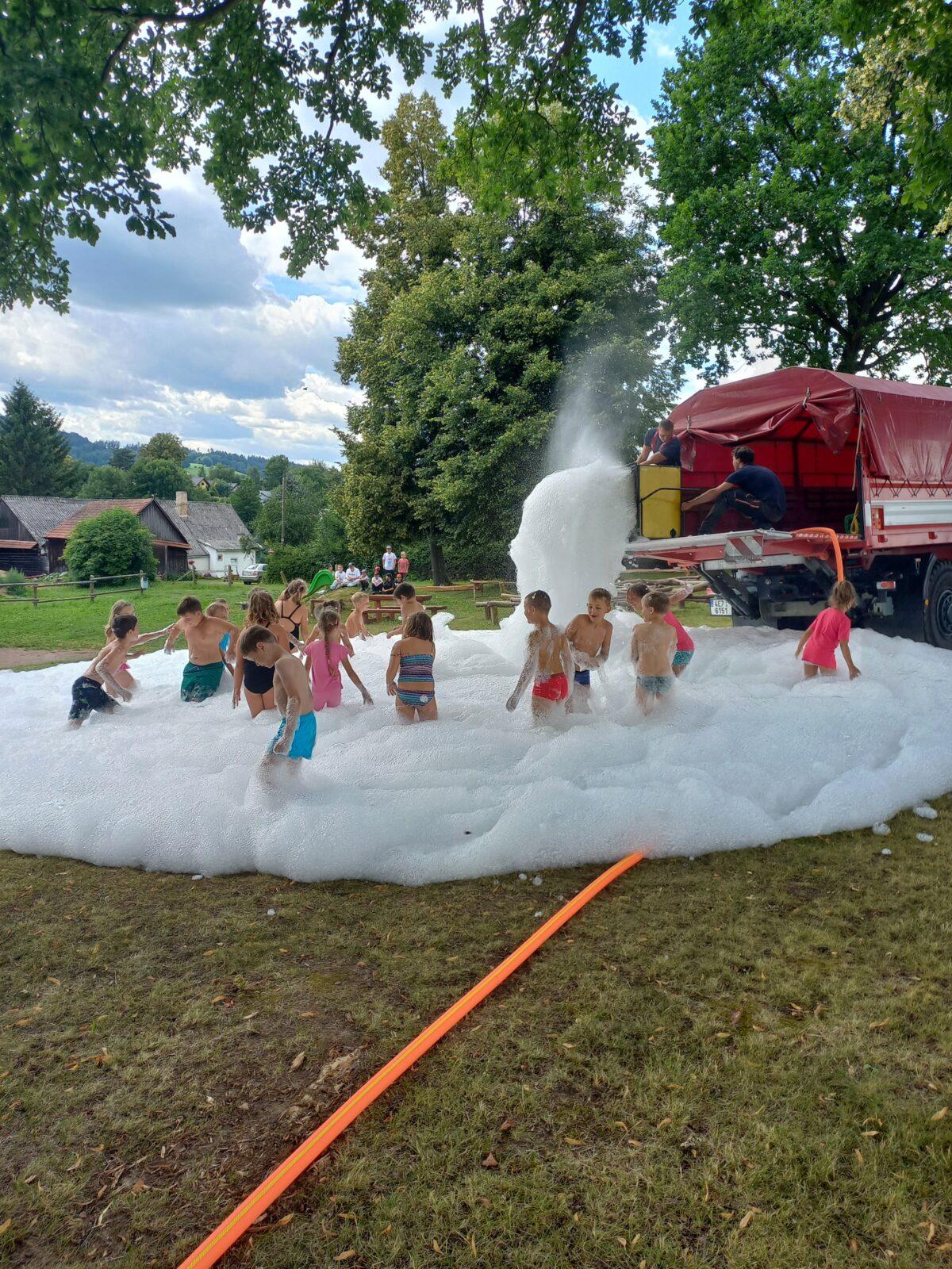 V dopoledním bloku čtvrtého dne příměstského tábora jsme se vydali za místním myslivcem Liborem Mikuleckým, který nám připravil zajímavý a interaktivní program o přírodě a myslivosti. Prohlédli jsme si různé druhy paroží, několik vycpaných zvířat, vyzkoušeli si vábničky a pozorovali přírodu pomocí dalekohledu. Na závěr programu jsme zúročili naše vědomosti o přírodě v rámci několika skupinových úkolů a mohli pozorovat srnku Lízinku při krmení. O náplň odpoledního programu se nám postarali profesionální hasiči HZS Pardubického kraje ze stanice Ústí nad Orlicí. Ukázali nám vybavení hasičských vozů, vyzkoušeli jsme si transport raněného člověka a prohlédli si Libchavy z výšky díky hasičské plošině. Pomyslnou "třešničkou na dortu" byla závěrečná pěnová párty. Moc děkujeme Liborovi Mikuleckému za pestrou dopolední část programu. Poděkování patří také Luďovi Kurakovi a jeho partě hasičů za realizaci adrenalinové odpolední části táborového programu.