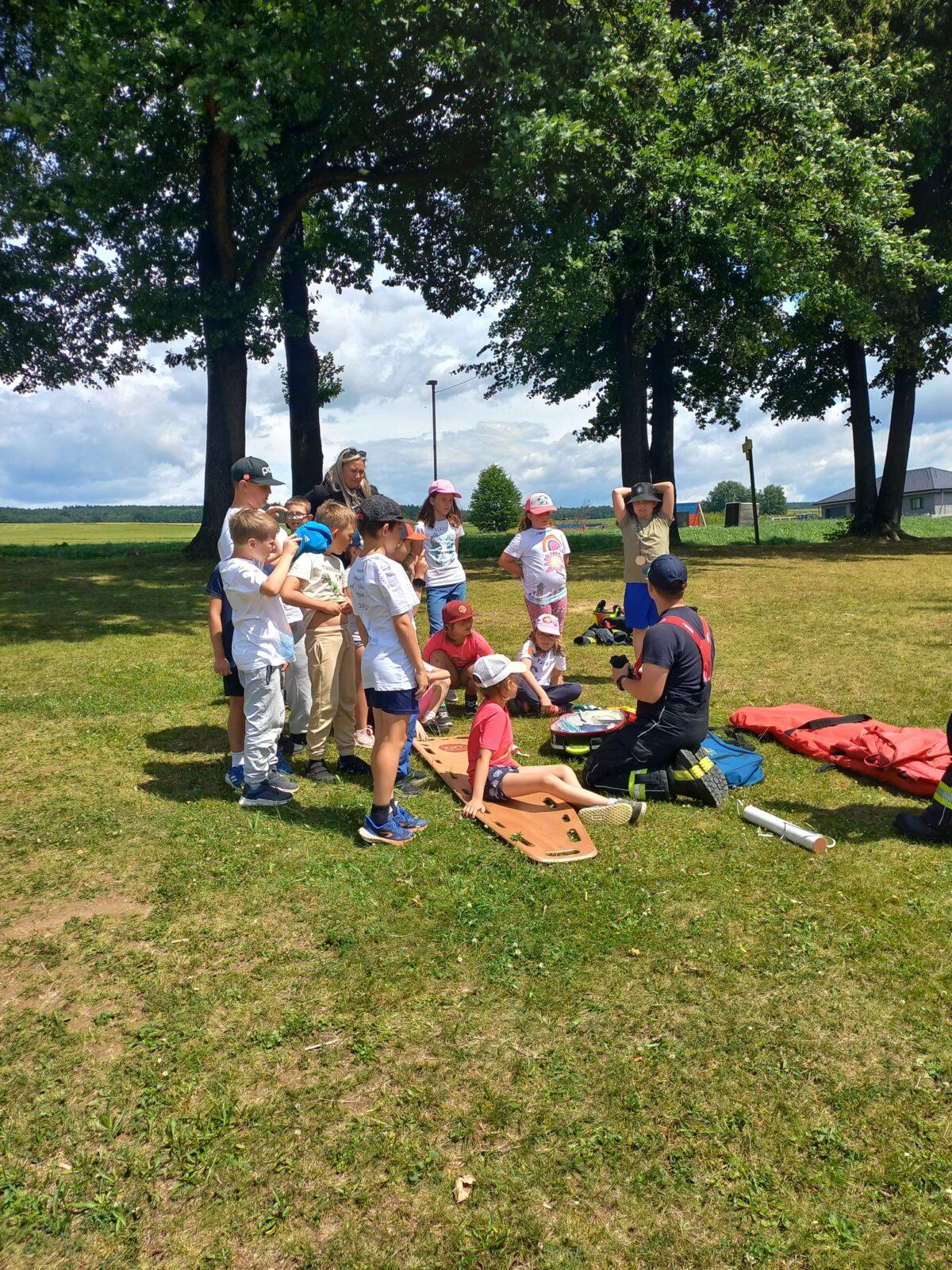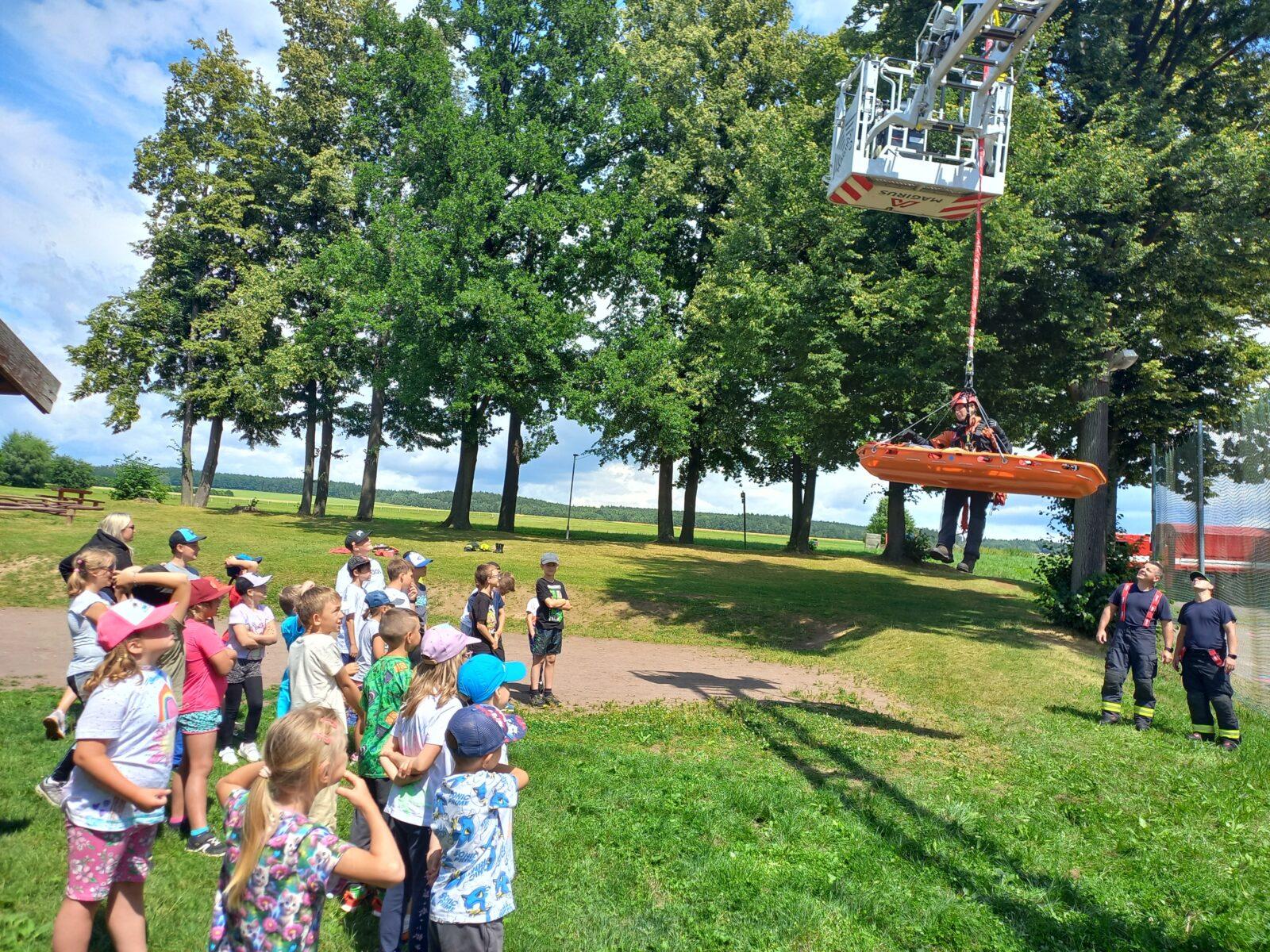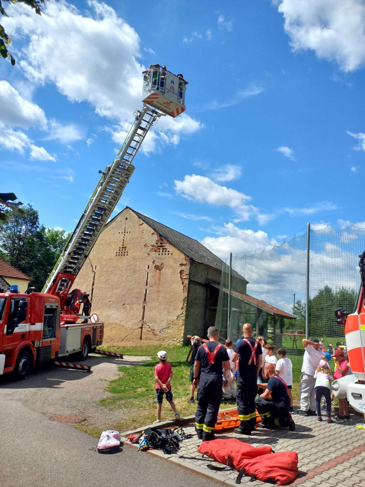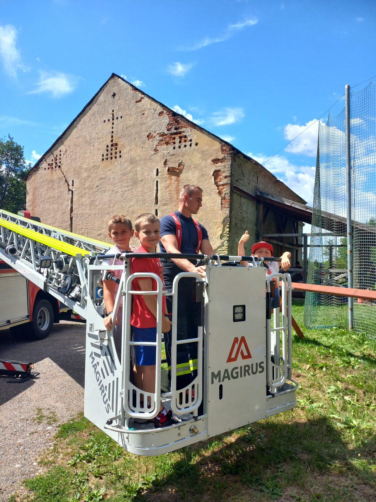 V dopoledním bloku čtvrtého dne příměstského tábora jsme se vydali za místním myslivcem Liborem Mikuleckým, který nám připravil zajímavý a interaktivní program o přírodě a myslivosti. Prohlédli jsme si různé druhy paroží, několik vycpaných zvířat, vyzkoušeli si vábničky a pozorovali přírodu pomocí dalekohledu. Na závěr programu jsme zúročili naše vědomosti o přírodě v rámci několika skupinových úkolů a mohli pozorovat srnku Lízinku při krmení. O náplň odpoledního programu se nám postarali profesionální hasiči HZS Pardubického kraje ze stanice Ústí nad Orlicí. Ukázali nám vybavení hasičských vozů, vyzkoušeli jsme si transport raněného člověka a prohlédli si Libchavy z výšky díky hasičské plošině. Pomyslnou "třešničkou na dortu" byla závěrečná pěnová párty. Moc děkujeme Liborovi Mikuleckému za pestrou dopolední část programu. Poděkování patří také Luďovi Kurakovi a jeho partě hasičů za realizaci adrenalinové odpolední části táborového programu.
