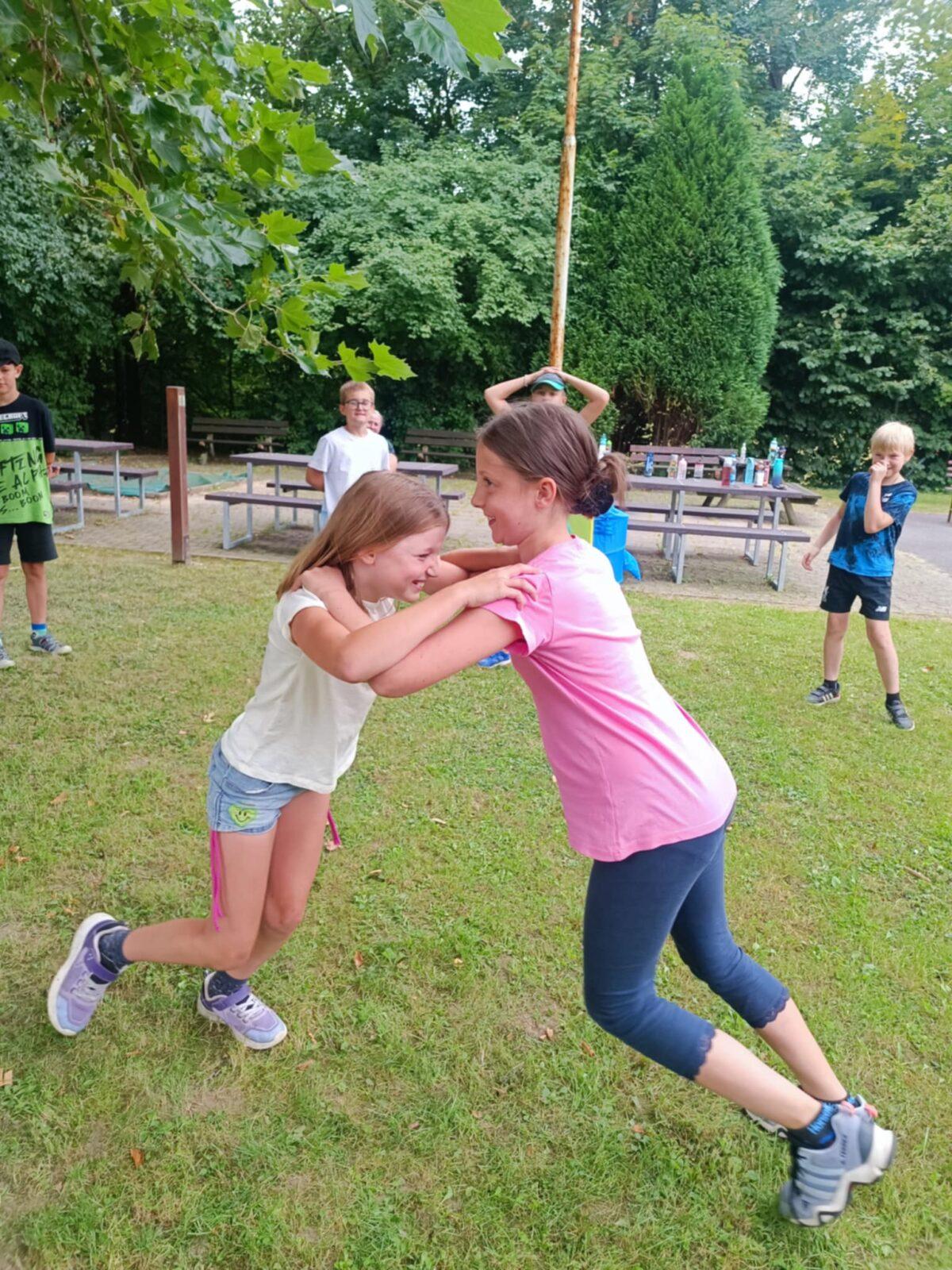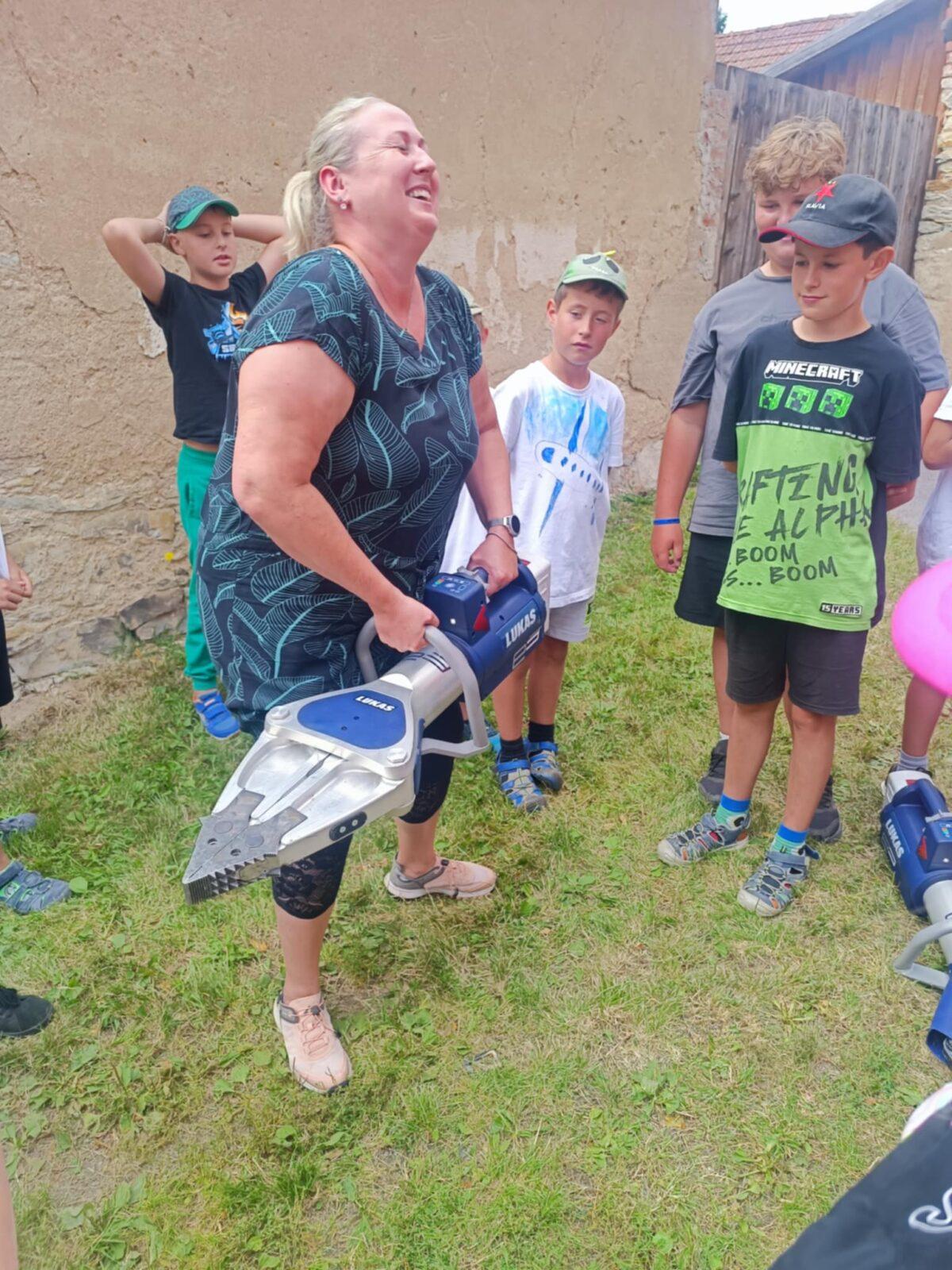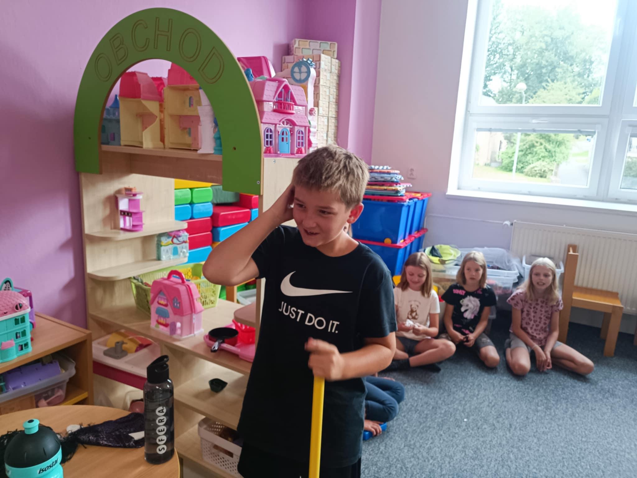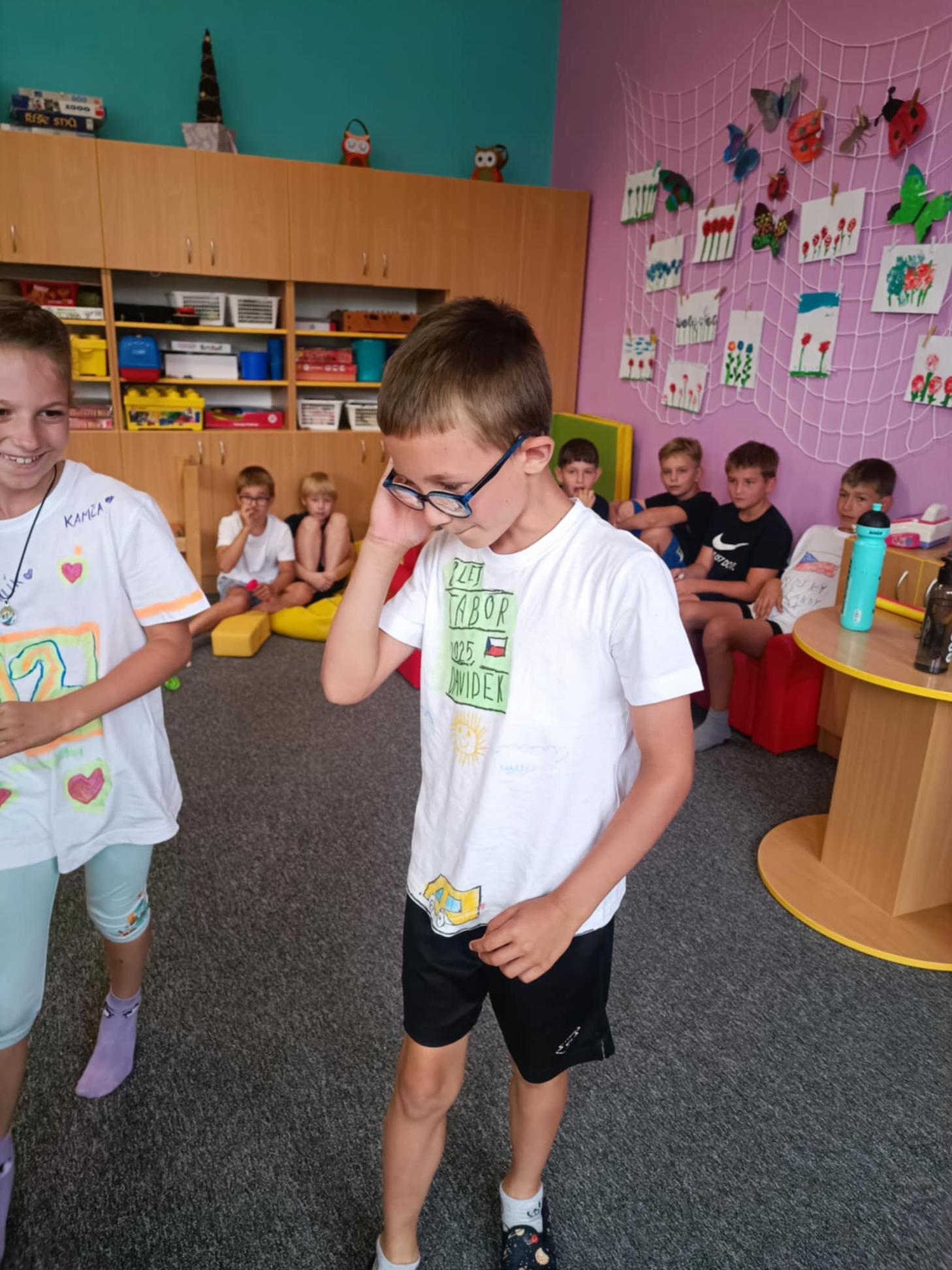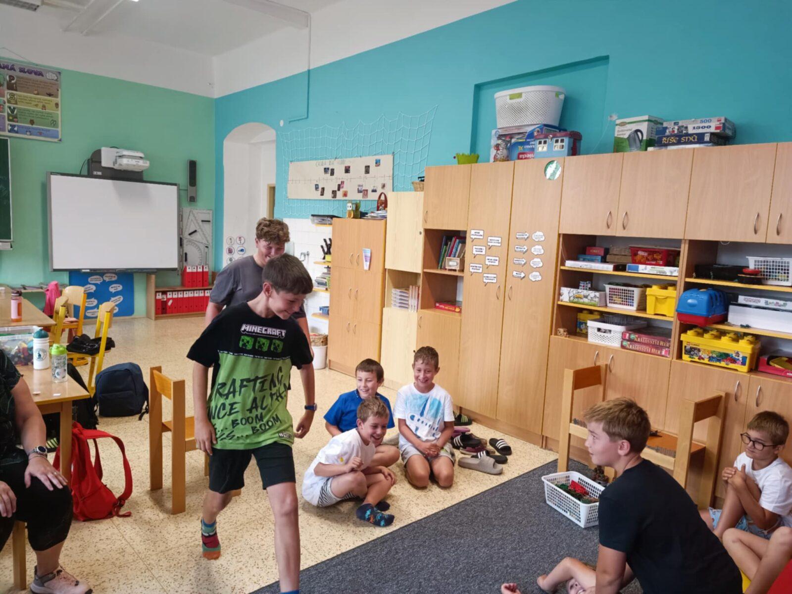 Dnes, ve čtvrtek, jsme se na táboře dopoledne věnovali tématu ohrožení – povídali jsme si o tom, jak se chovat při zdravotních potížích a kdy je potřeba volat hasiče nebo policii. Děti k tomu připravily naprosto úžasné scénky, ve kterých předvedly, že si umí poradit i v těžkých situacích. Poté jsme se přesunuli ven, kde jsme si zasoutěžili v přetahování a porovnávání sil.
