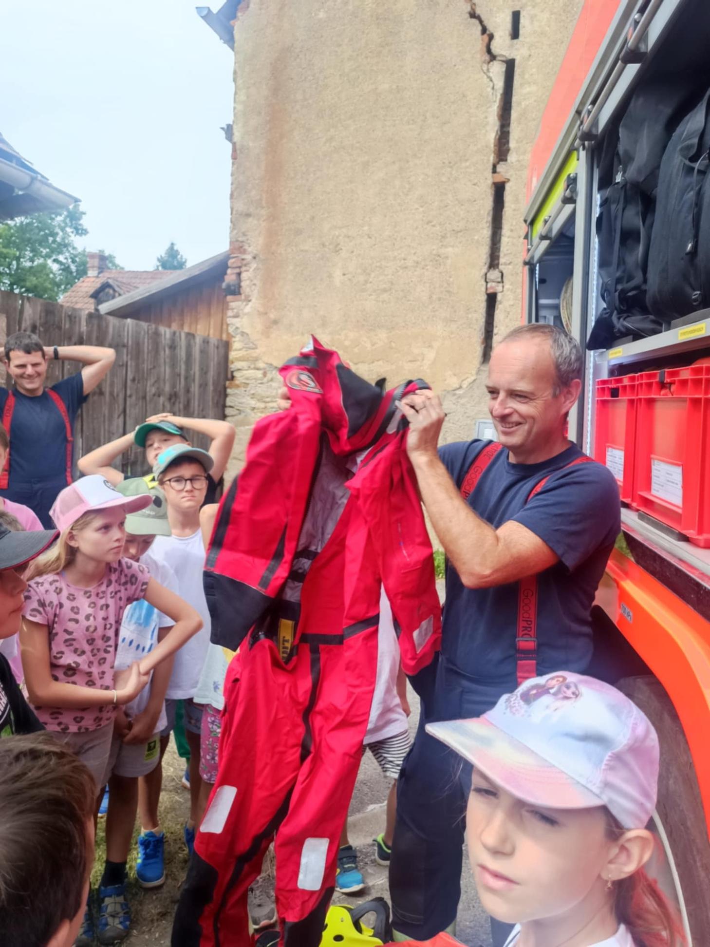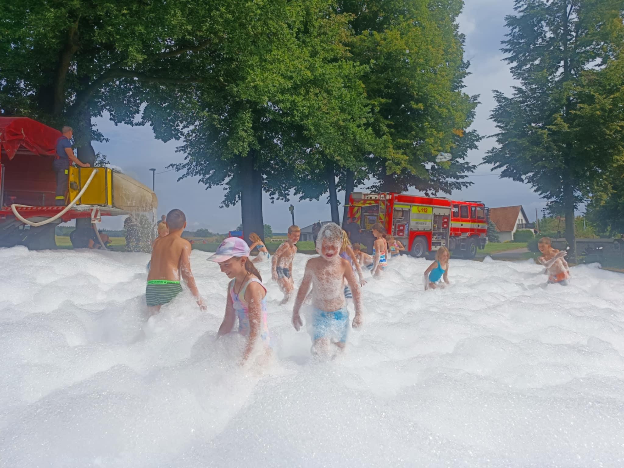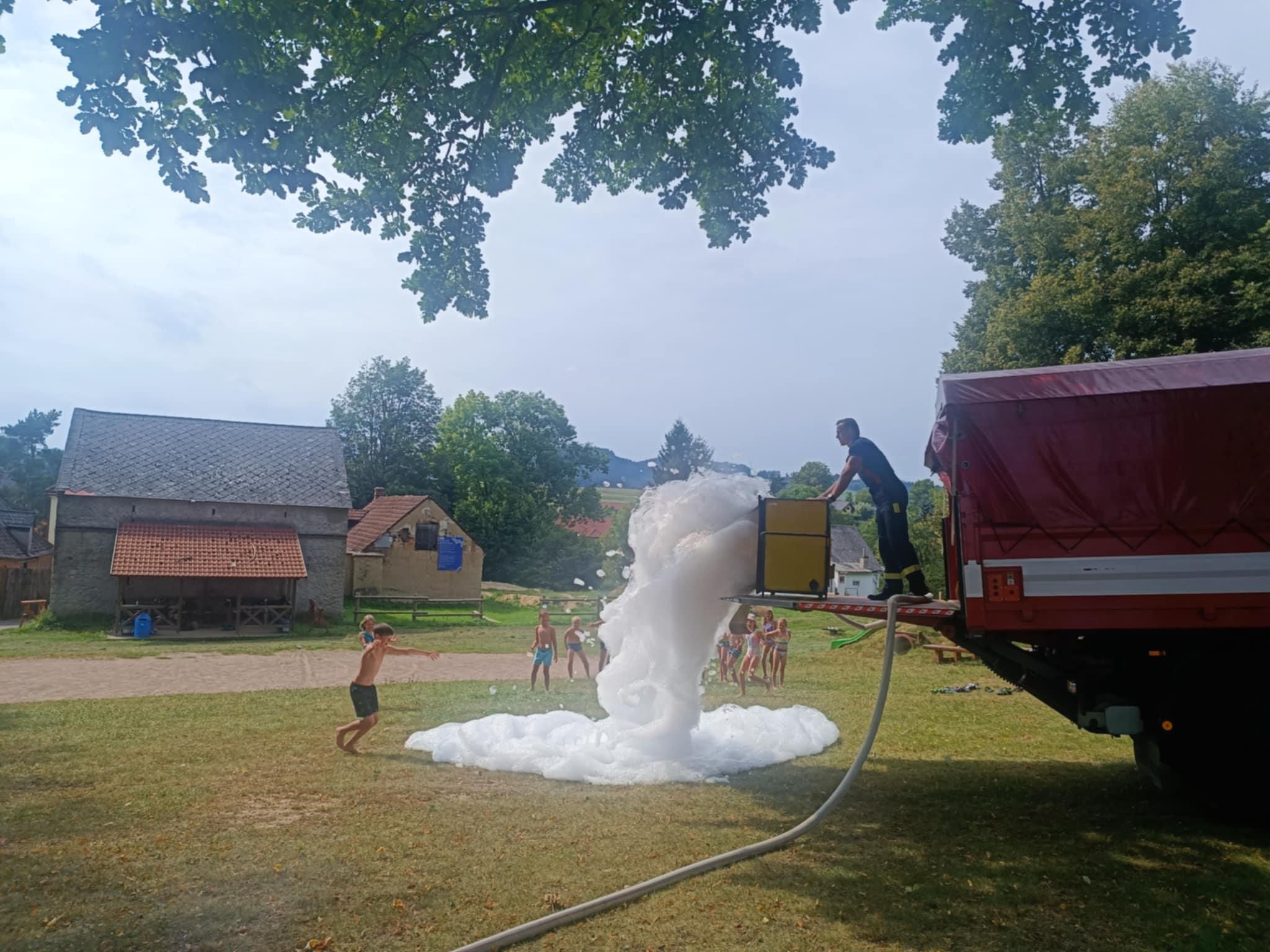 Odpoledne nás čekala návštěva HZS - hasičského záchranného sboru Pardubice - pobočka Ústí nad Orlicí , kteří přijeli i se svými vozy. Pověděli nám o své práci, ukázali vybavení a na závěr pro nás připravili velkou pěnovou show, na kterou se všichni moc těšili. Děkujeme za jejich čas a zajímavé vyprávění.