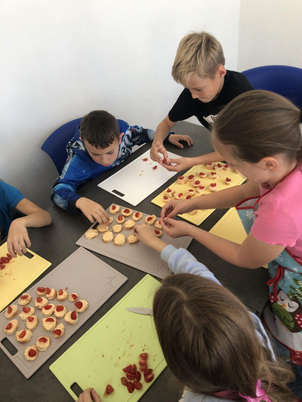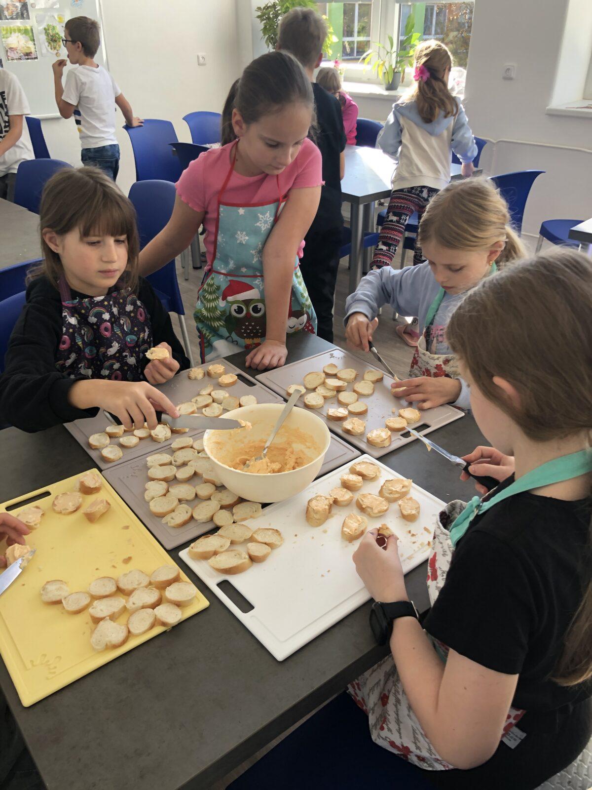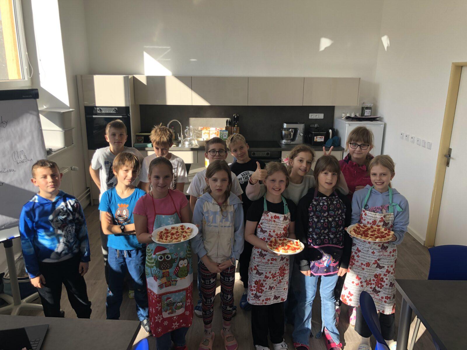 V rámci pracovních činností čtvrťáci v pondělí 20. 10. zavítali do nově zrenovované školní kuchyňky. Nejdříve jsme se společně pustili do pečení bábovky. Než se nám obě upekly, děti si vyzkoušely také přípravu lahodných jednohubek s česnekovou pomazánkou, po kterých se 20 sekund po společné fotce jen zaprášilo... Celé odpoledne se neslo ve znamení spolupráce, radosti z vaření (a ochutnávání) a prozkoumávání nového vybavení naší kuchyňky. 🧑🍳