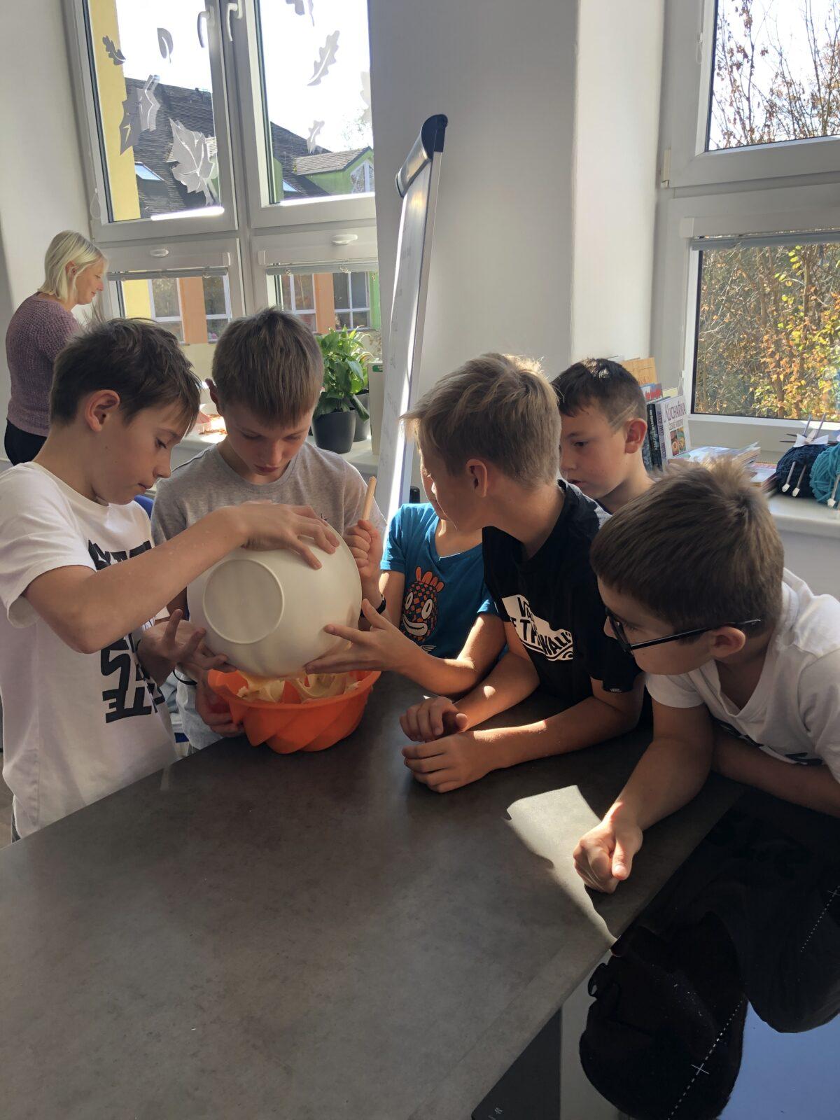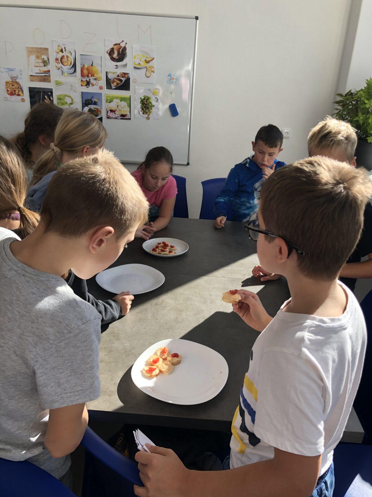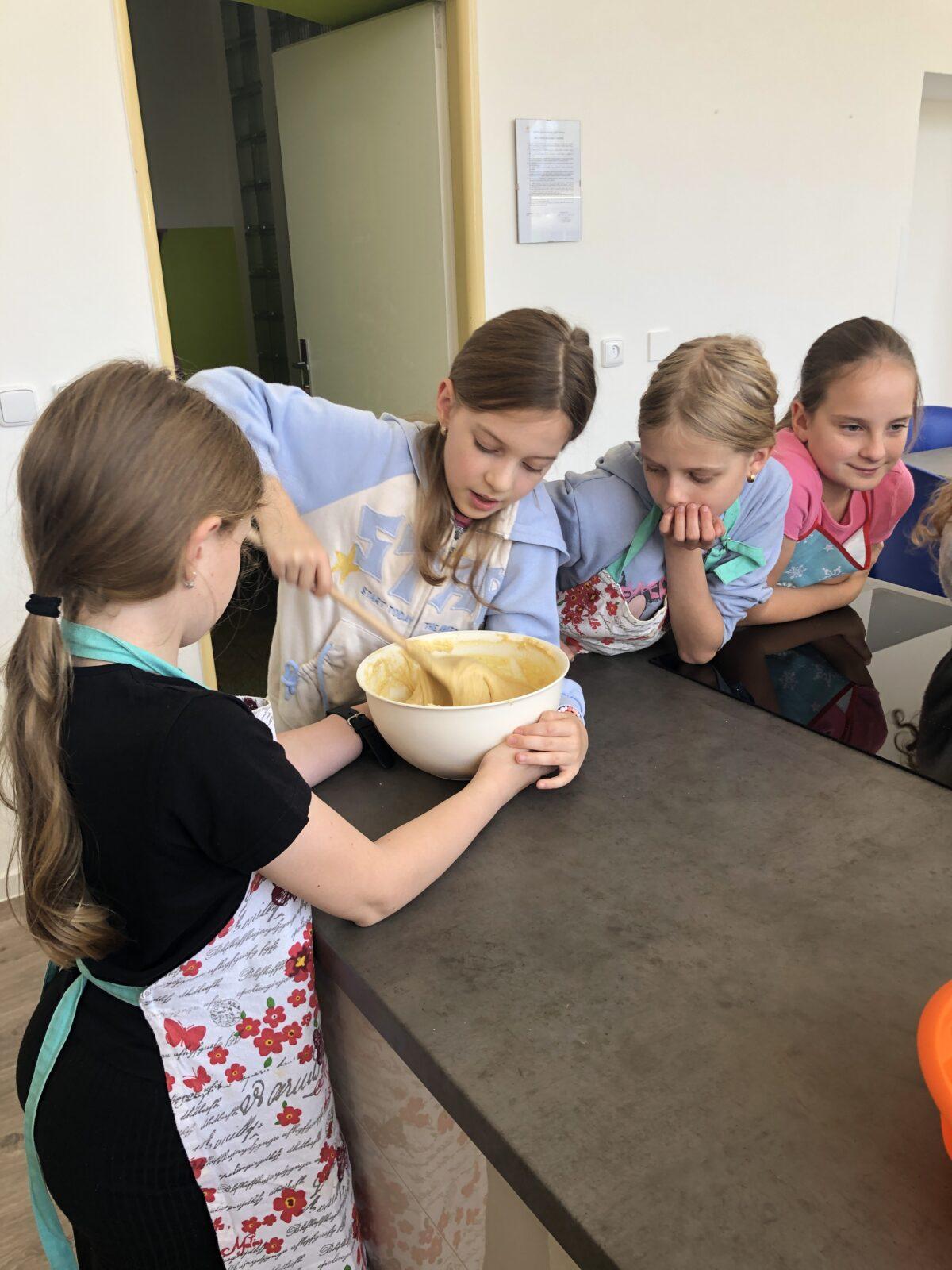 V rámci pracovních činností čtvrťáci v pondělí 20. 10. zavítali do nově zrenovované školní kuchyňky. Nejdříve jsme se společně pustili do pečení bábovky. Než se nám obě upekly, děti si vyzkoušely také přípravu lahodných jednohubek s česnekovou pomazánkou, po kterých se 20 sekund po společné fotce jen zaprášilo... Celé odpoledne se neslo ve znamení spolupráce, radosti z vaření (a ochutnávání) a prozkoumávání nového vybavení naší kuchyňky. 🧑🍳