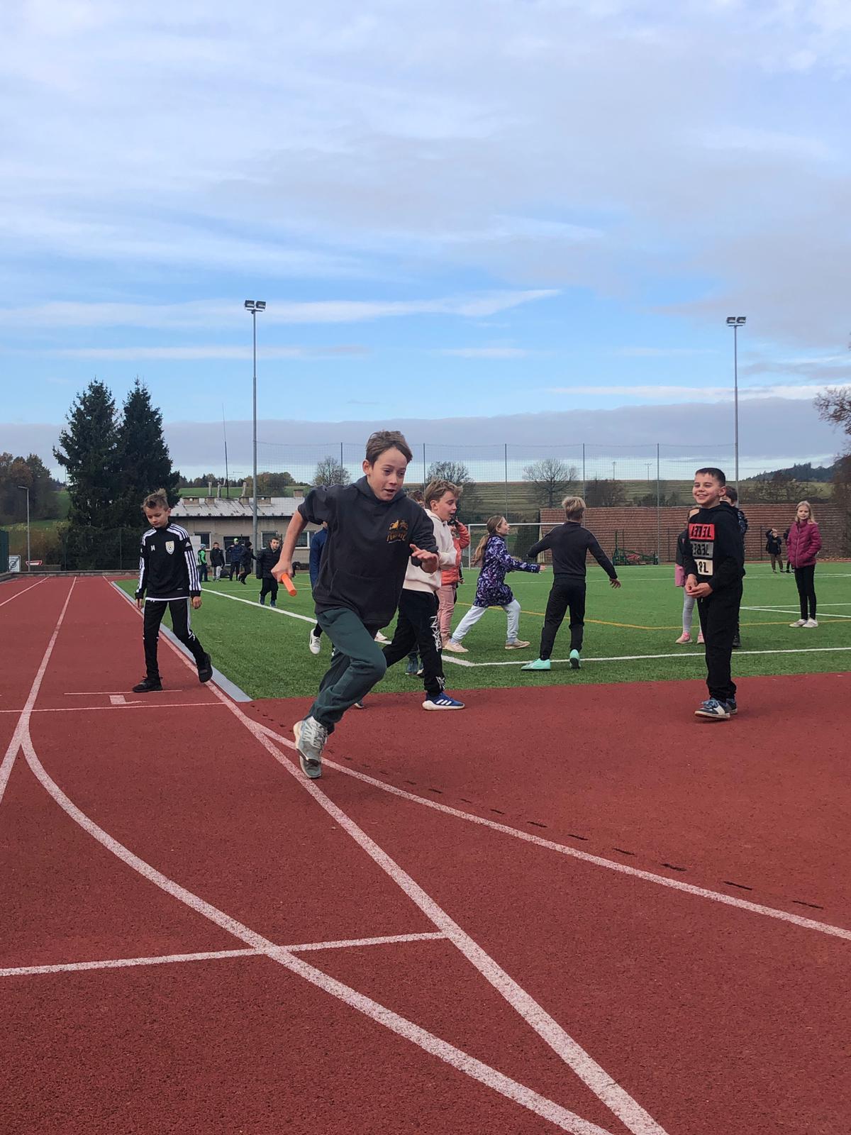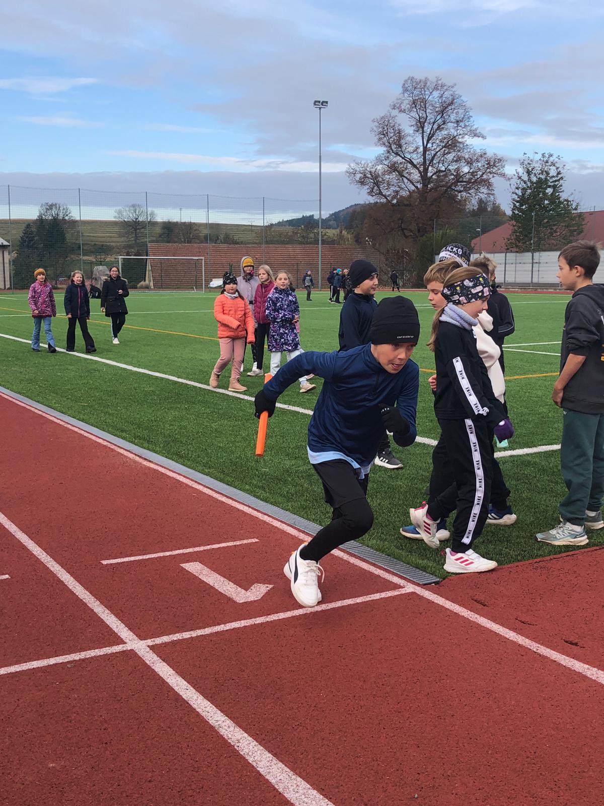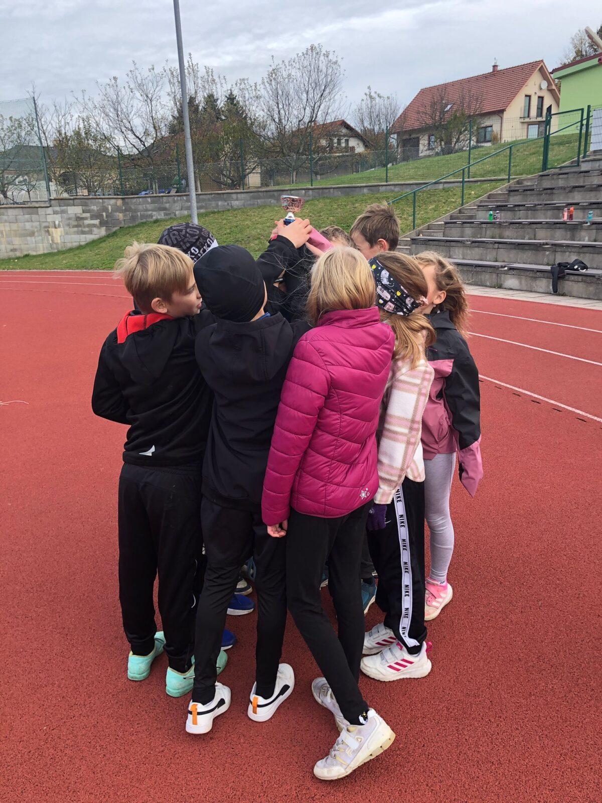 Dnes proběhl na 1. stupni tradiční běžecký štafetový závod o putovní pohár Emila Zátopka, kterého se vždy účastní děti ze 4. a 5. třídy. Pohár si pro tento školní rok vybojoval tým sportovců ze 4. A a 4. B. Podle pravidel mají vždy čtvrťáci 20 ti sekundový náskok, který náležitě využili. Nicméně na závěrečných výsledcích vidíme, že pokud by oba týmy vybíhaly stejně, byl by to opravdu velmi těsný souboj. 4. třída doběhla v čase 6: 31,87 a 5. třída v čase 6:53,51 Všem běžcům gratulujeme, byli jste skvělí :-).