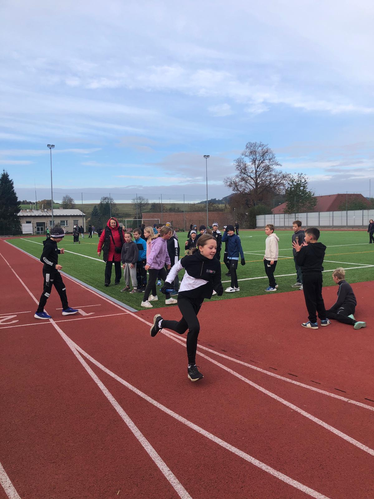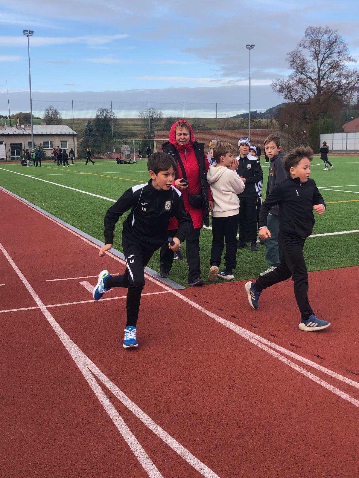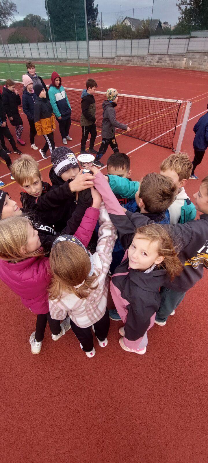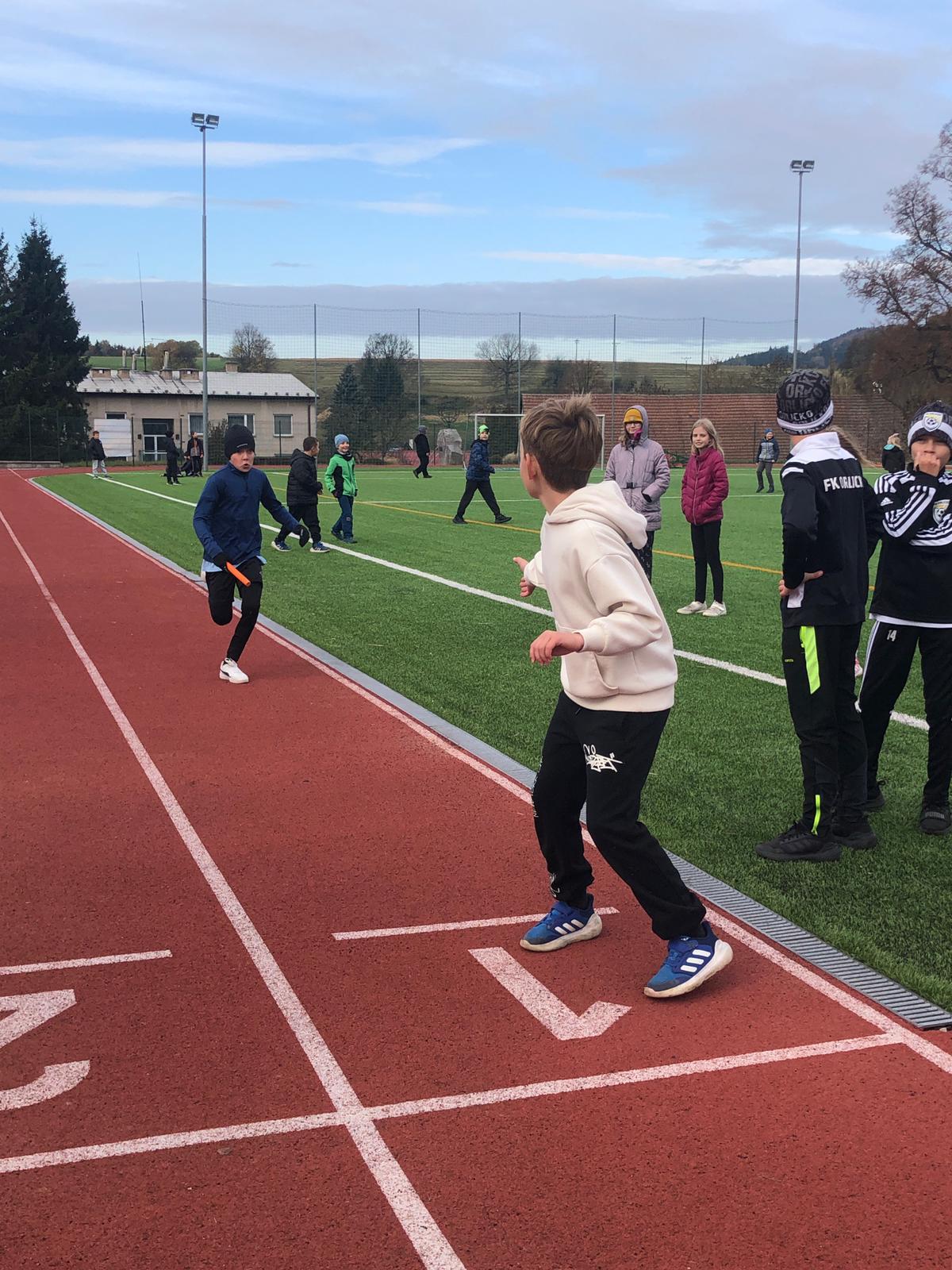 Dnes proběhl na 1. stupni tradiční běžecký štafetový závod o putovní pohár Emila Zátopka, kterého se vždy účastní děti ze 4. a 5. třídy. Pohár si pro tento školní rok vybojoval tým sportovců ze 4. A a 4. B. Podle pravidel mají vždy čtvrťáci 20 ti sekundový náskok, který náležitě využili. Nicméně na závěrečných výsledcích vidíme, že pokud by oba týmy vybíhaly stejně, byl by to opravdu velmi těsný souboj. 4. třída doběhla v čase 6: 31,87 a 5. třída v čase 6:53,51 Všem běžcům gratulujeme, byli jste skvělí :-).