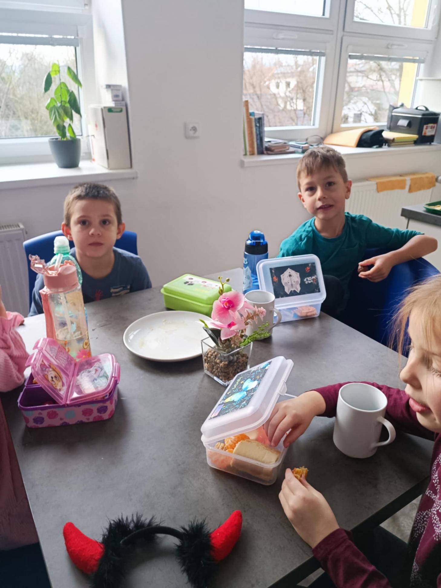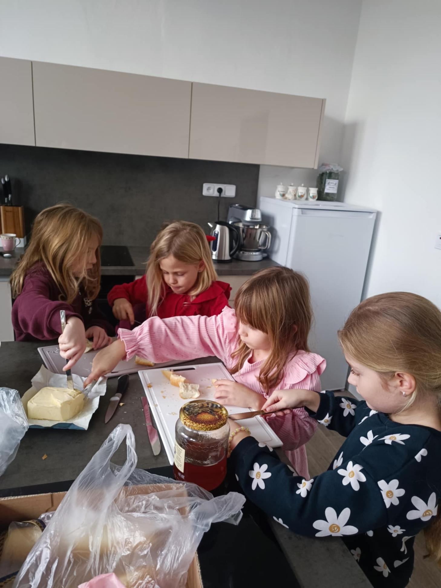 V rámci projektového týdne ADVENT jsme si ve školní kuchyňce užili krásné předvánoční setkání. Společně jsme si uvařili čaj, který nám krásně zpříjemnil chvilky. Děti pozorovaly , jak se ve slupce jablíčka objeví malá hvězdička. Nakrájeli jsme si jablíčka, která poslouží k sušení i jako přírodní vánoční výzdoba. Poté si každý sám namazal jednohubky máslem a medem. Nakonec jsme si všichni společně poseděli a zazpívali několik krásných vánočních koled. Byla to moc příjemná a radostná chvíle.