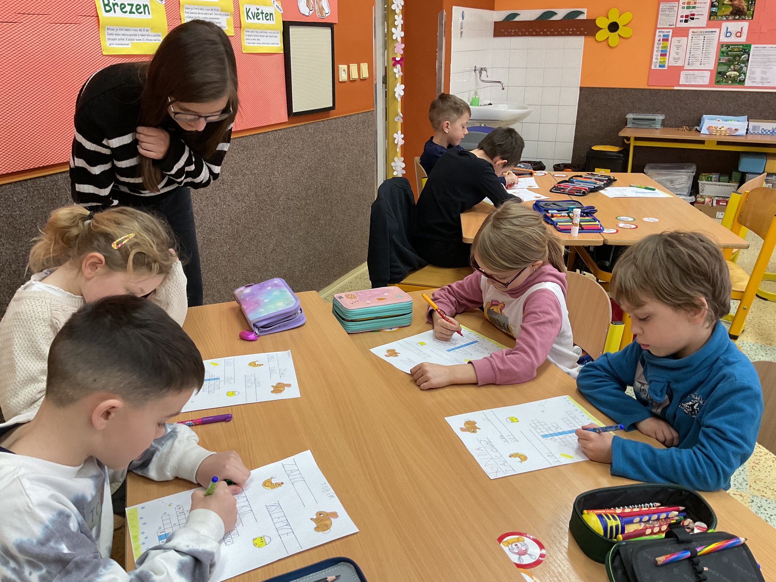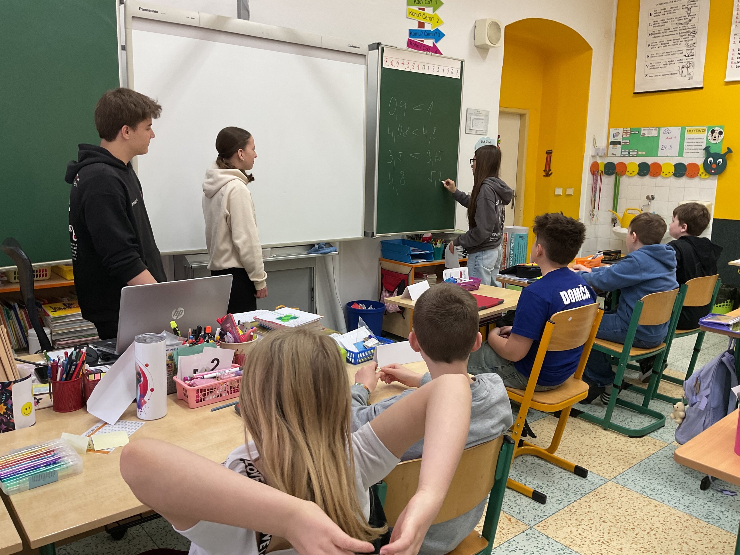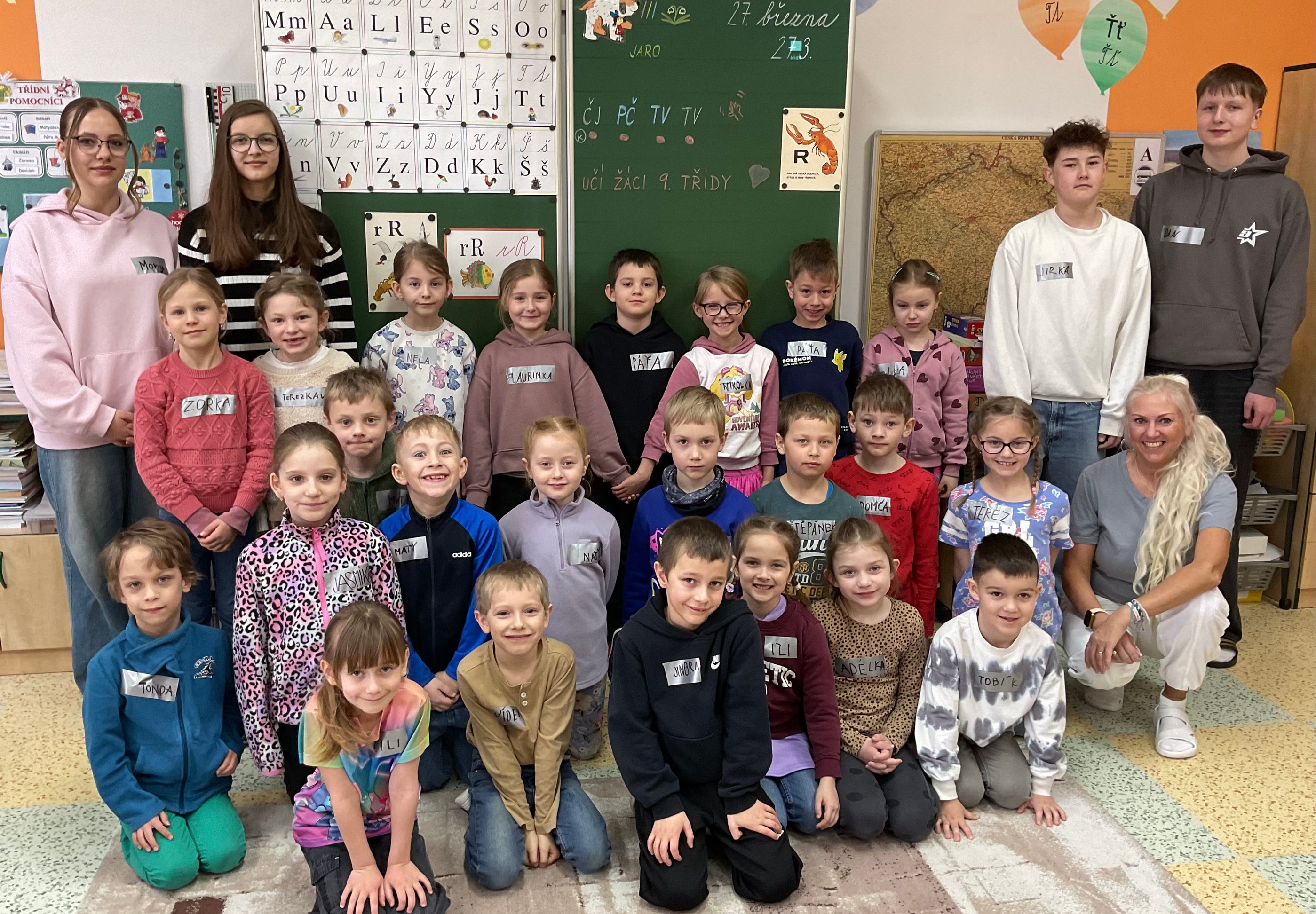 V pátek 27. března zažila naše škola neobvyklé dopoledne. Role se obrátily a za katedry tříd na prvním stupni se místo učitelů postavili naši nejstarší žáci. Cíl byl jasný: vyzkoušet si, jaké to je stát „na druhé straně“, udržet pozornost mladších spolužáků a předat jim nové znalosti hravou formou. Mladí učitelé přípravu nepodcenili a do tříd dorazili s pracovními listy, kvízy i interaktivními hrami. Mladší žáci byli z nových „učitelů“ nadšení. Pro deváťáky to byla cenná lekce z trpělivosti, komunikace a organizace. Tento den opět ukázal, že naše škola táhne za jeden provaz a můžeme se od sebe učit navzájem bez ohledu na věk. Velká pochvala patří všem deváťákům za jejich odvahu a zodpovědný přístup.